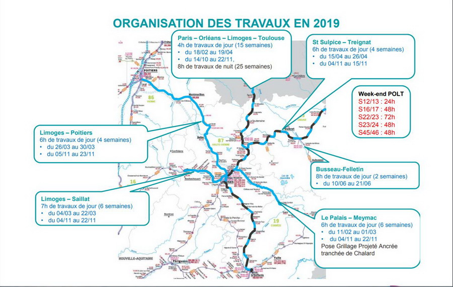 travaux ferroviaire RVB de la ligne du POLT (Paris-Orléans-Limoges-Toulouse) entre 2019 et 2024