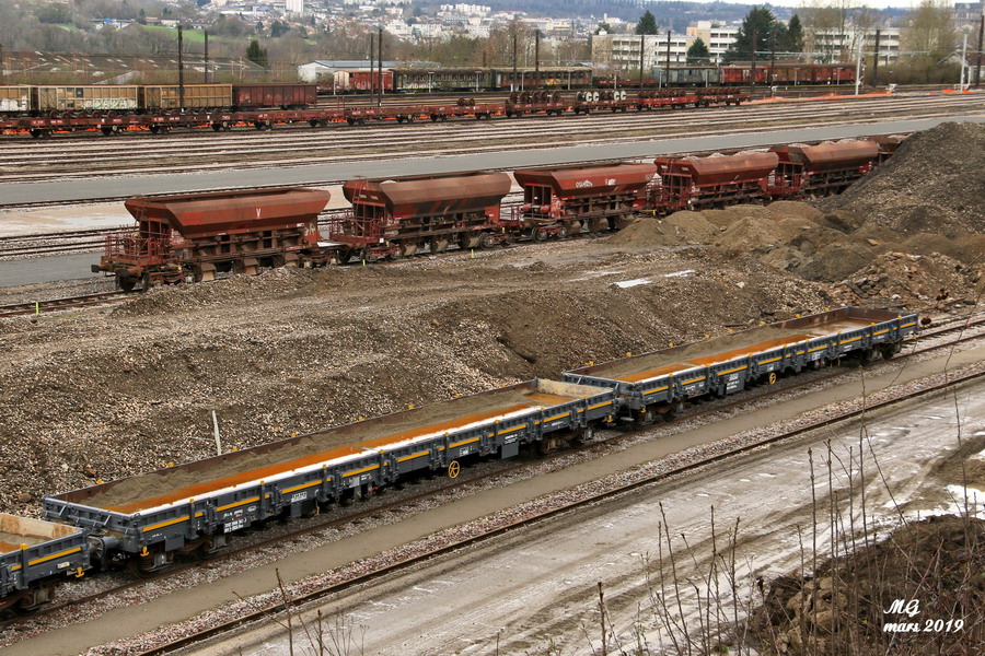 wagon plat 33 87 2937 649-3 Res RIV F-ERSA location ERMEWA pour SNCF RESEAU au Puy-Imbert le 15-03-2019
