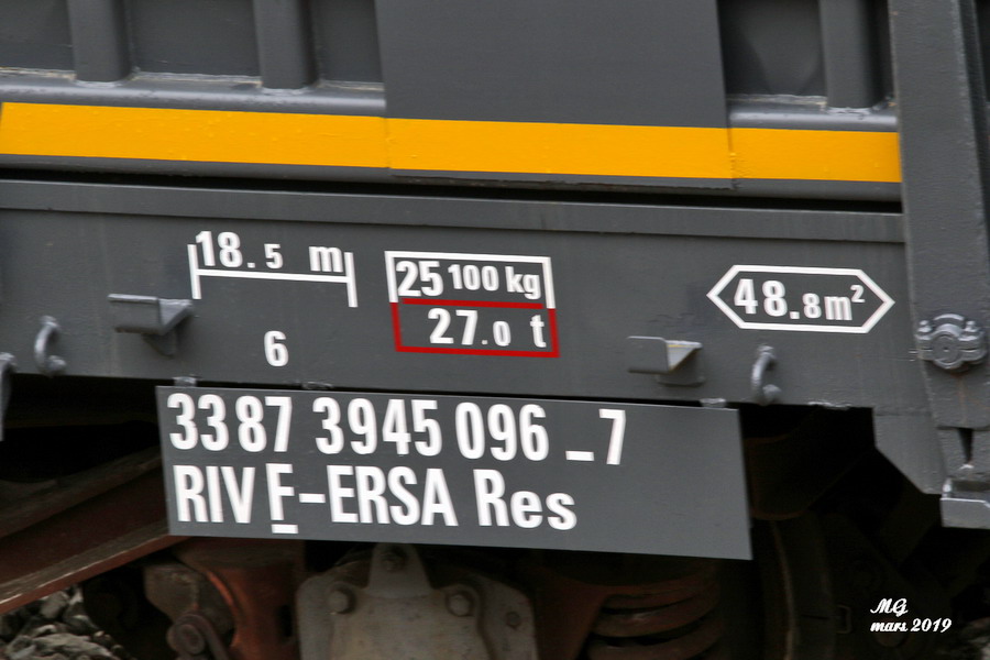 wagon 33 87 3945 096-7 Res RIV F-ERSA - ERMEWA en location SNCF RESEAU sur base arrière du Puy-Imbert le 15-03-2019