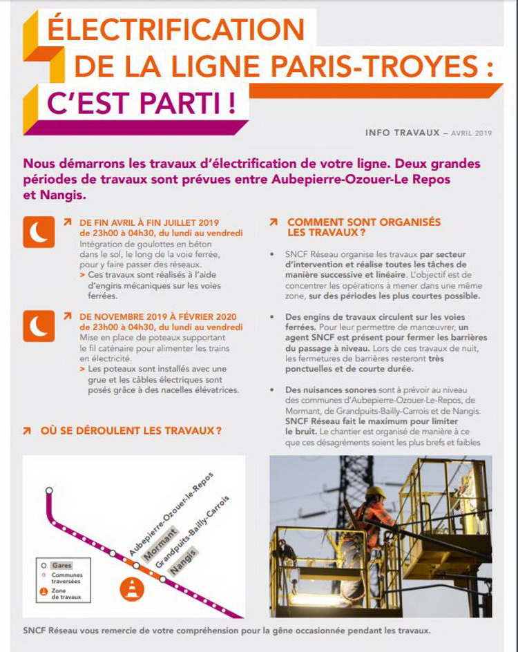 Electrification de la ligne Paris - Troyes 2019/2021
