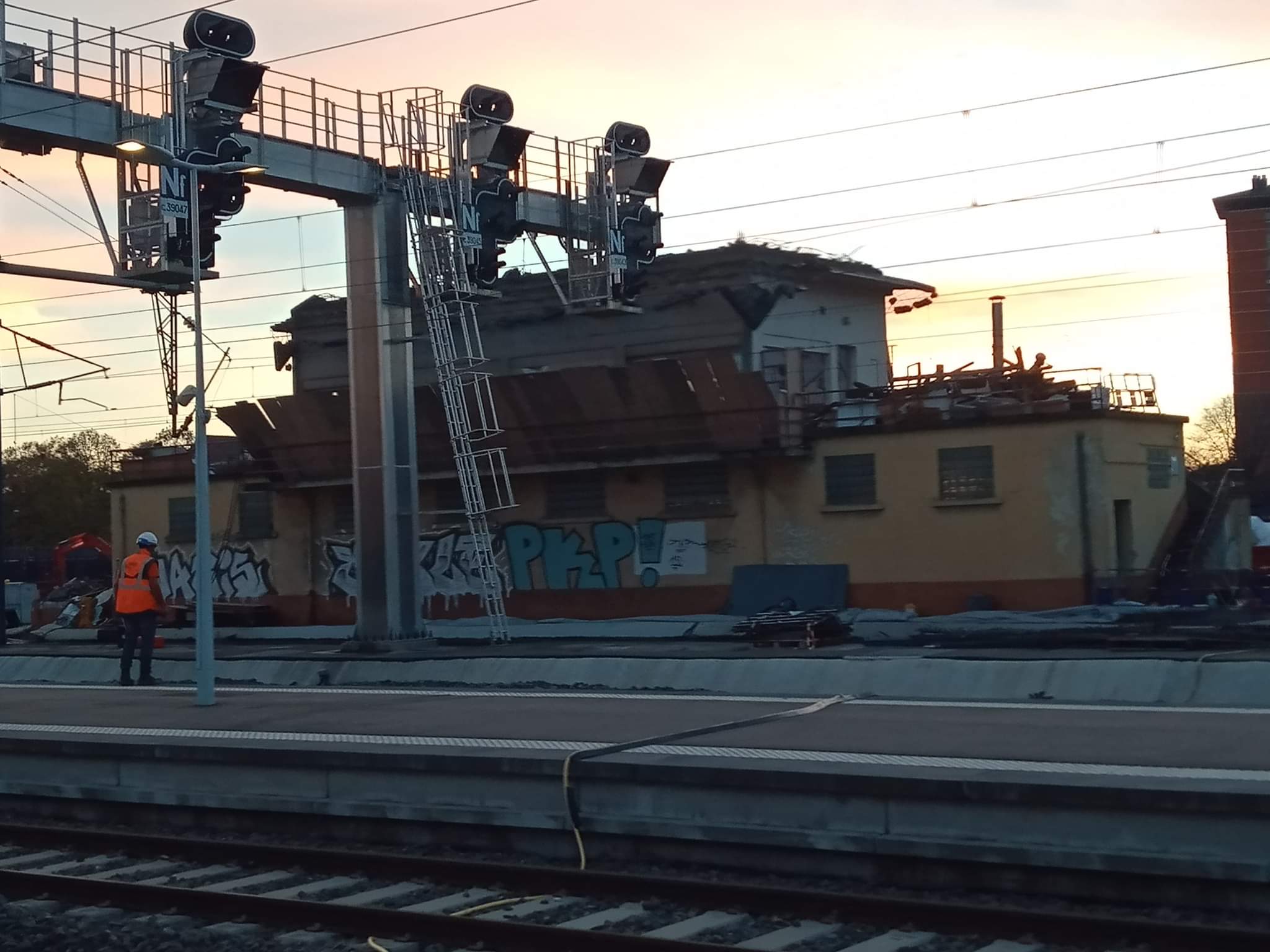 Démolition du poste aiguillage qui se trouve sur le quai