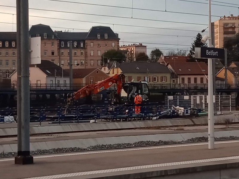 V212 Colas rail avec 3 wagons plats Oc’via maintenance qui s’occupe du CNM