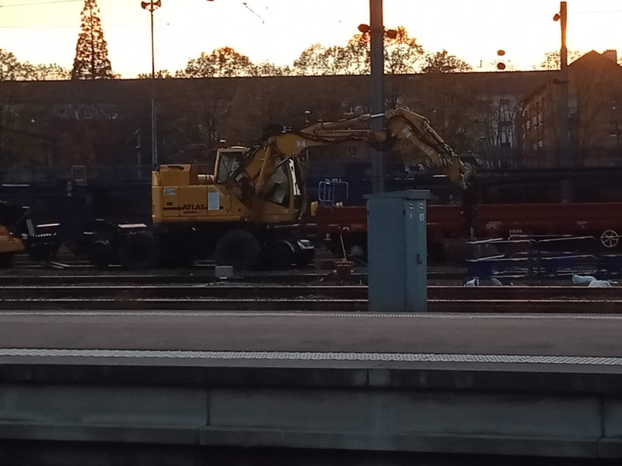 Les gravats sont chargé sur le trains par les pelles rail route