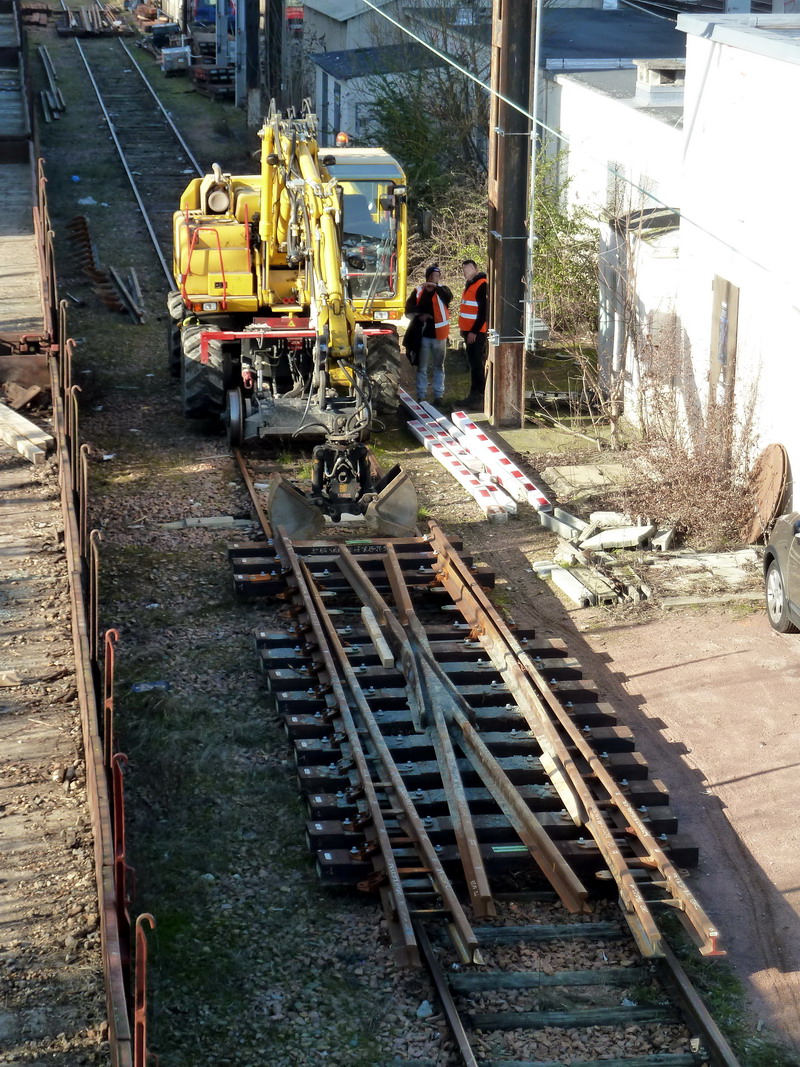 la suite lundi 16-02-2015 avec la préparation d'un aiguillage pour la gare avec la pelleteuse ATLAS MZ et la Geismar KGT Va Meccoli