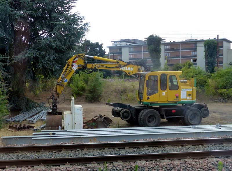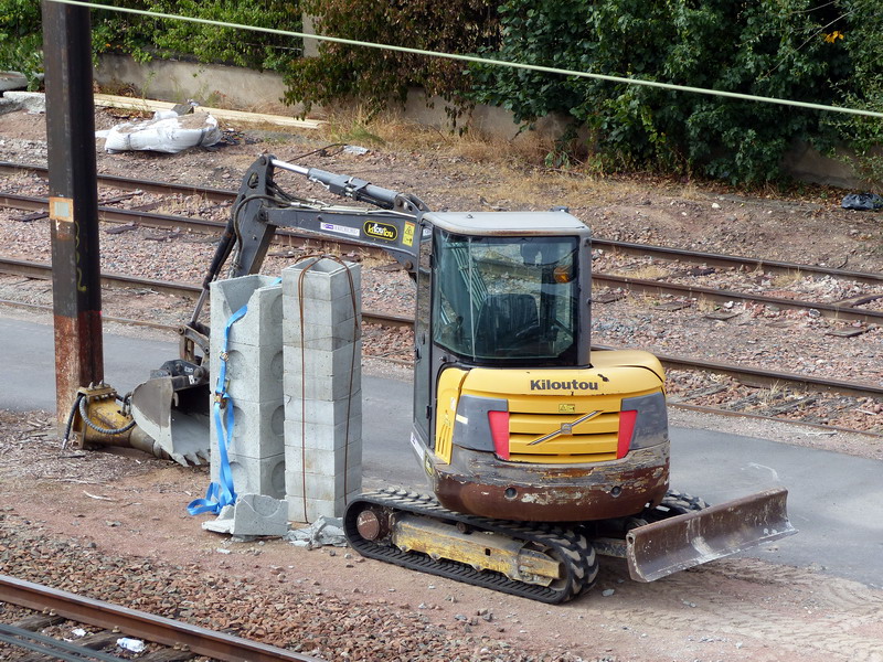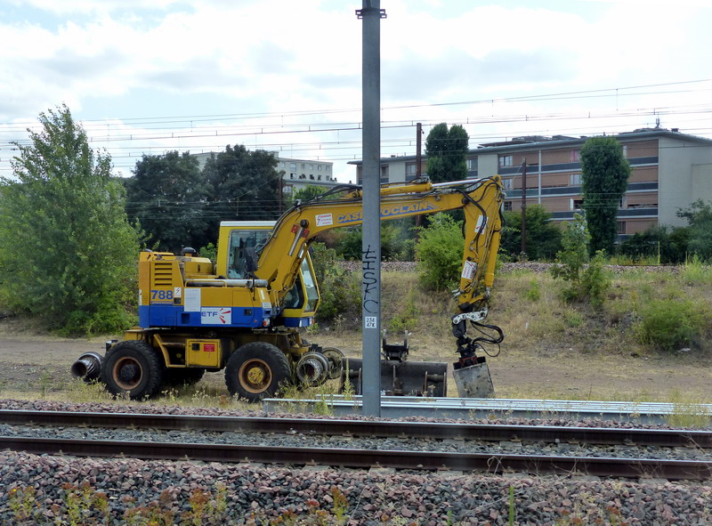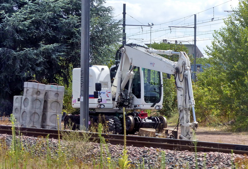 voici la suite avec le déplacement des poteaux caténaires entre les voies avec les deux pelleteuses l'UNAC et l'ATLAS de Kévin