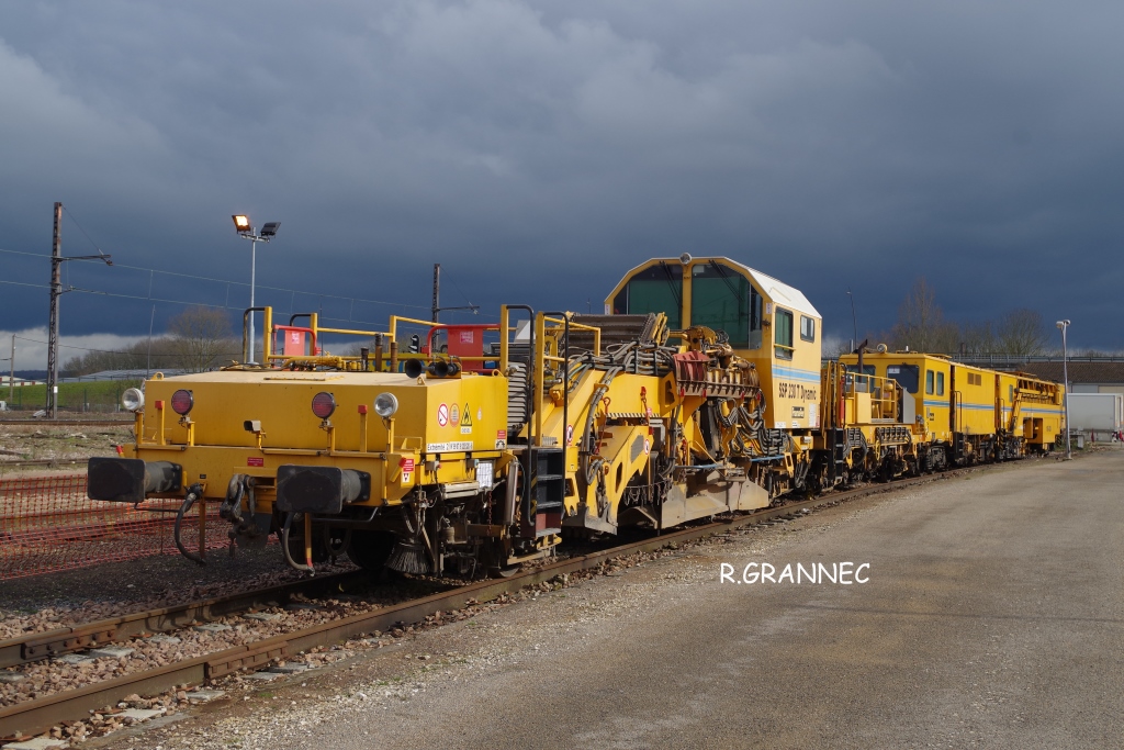 Voici la photo d'Eric Lacroix dit le Chalindrey :D de la Régaleuse et de la Bourreuse ESAF le 29-02-2016 en gare de d'Etigny-Véron