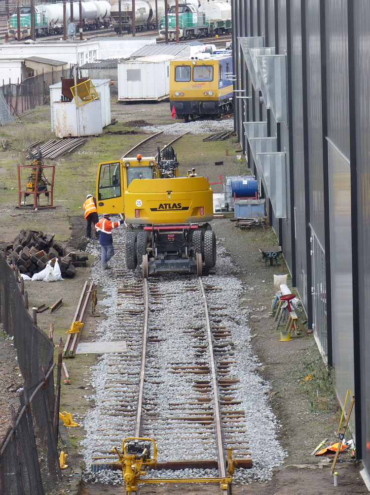 Quelques travaux à la SOCOFER de Saint Pierre des Corps sur la voie de garage avec des nouvelles traverses