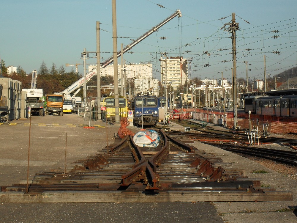 Etant de nouveau sur Besançon ce vendredi 25 novembre, je me suis arrêté quelques instant, ils avancent bigrement vite, une voie à déjà été reposée: