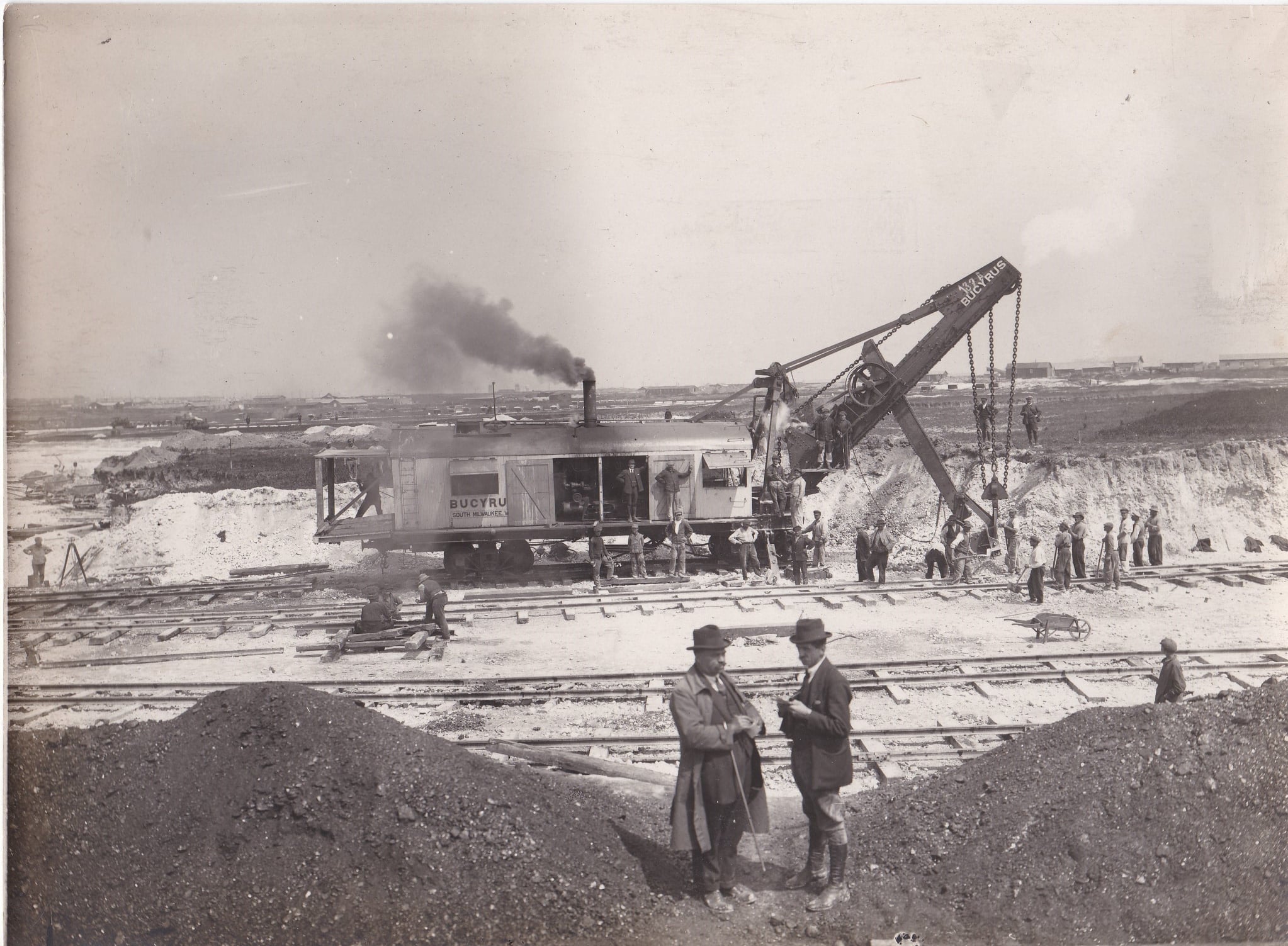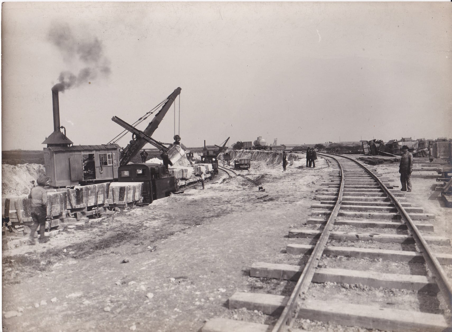 Je suis tombé sur un lot d'anciennes photographies des débuts 1900 concernant ma commune mais l'ancien possesseur était assurément intéressé par les entreprises Drouard-Frères car ce lot contient 21 photos non pas des ballastes mais de la pose de chemin de fer avec un engin "Pelle à vapeur Bucyrus sur rail" me permettant de dater approximativement ces dernières à max 1932