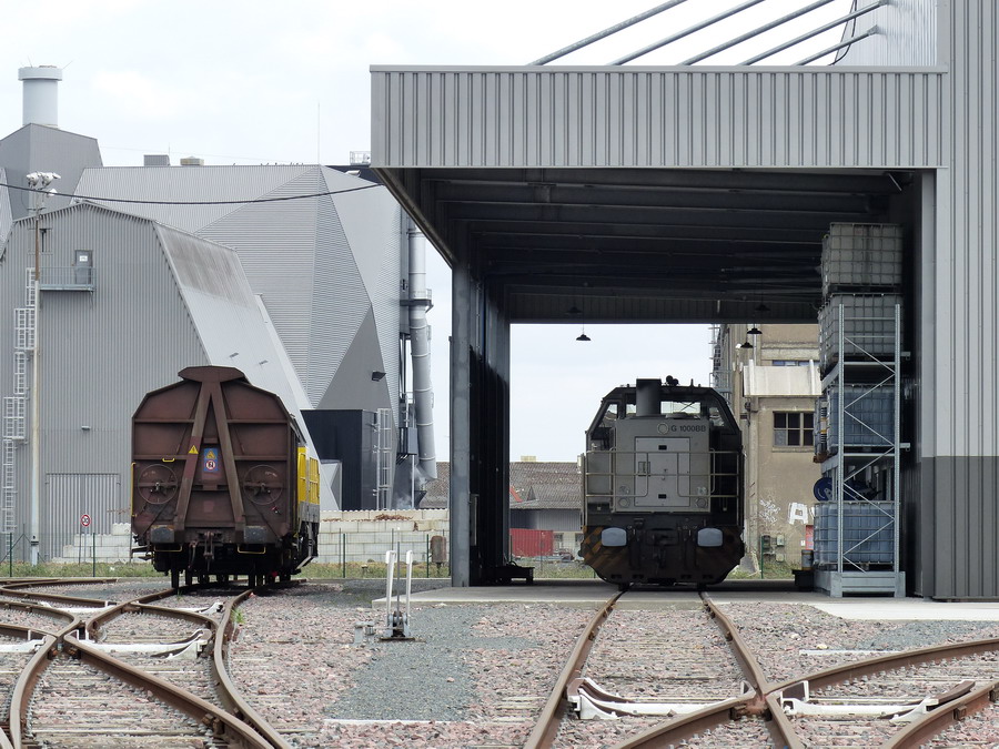 la G 1000 BB 5001828 - 92 87 0001 014-9 F-ECR qui franchie la grille du site de l'atelier IMATEQ à SPDC le 07-03-2019