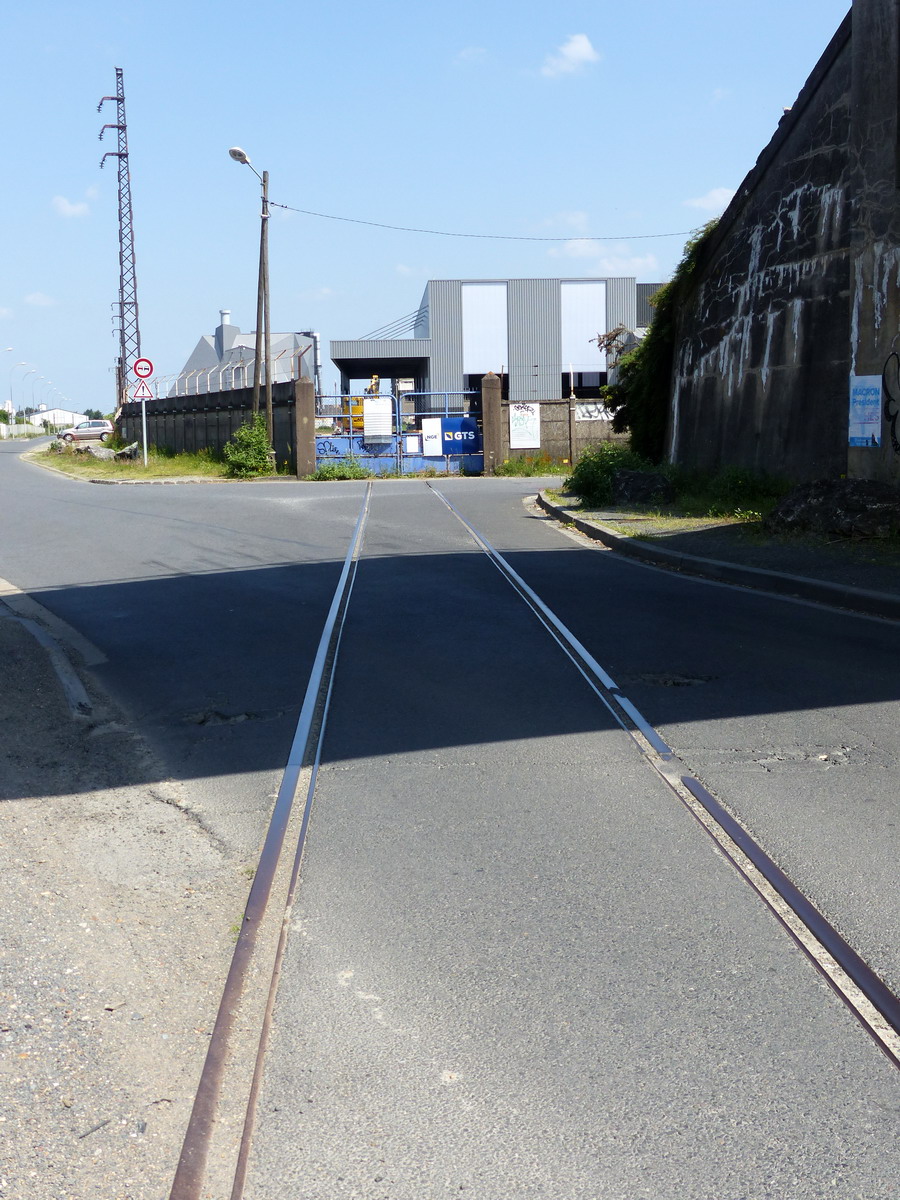 routier qui arrive à la gare de Saint Pierre des Corps puis la voie rentre dans la cour de la Socofer pour relier le réseau SNCF