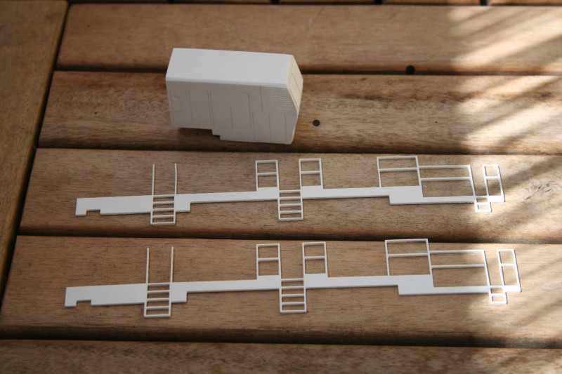 vu l'heure!!! Impressionnant! Le gros avantage avec la pièce de la première photo est d'économiser un temps précieux! Plus de petites pièces à découper et coller... Et en plus un équerrage parfait! Pas de marchepieds qui risquent de partir en vrille!
