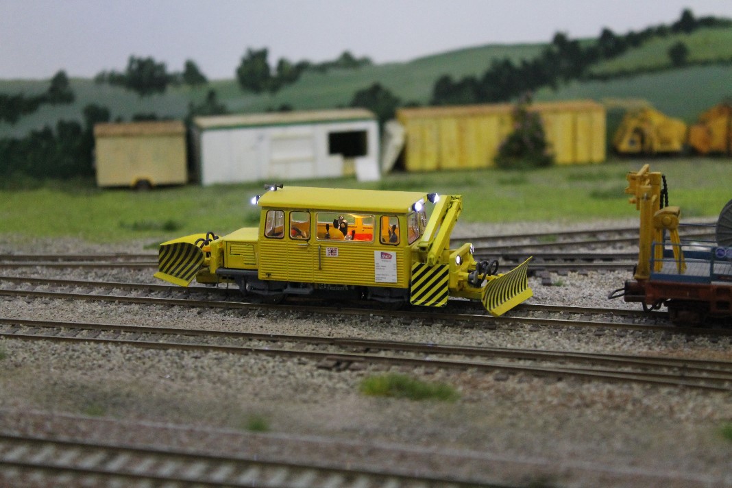 Diorama montrant le remplacement d'aiguilles par la grue Kirow de TSO. Cherchez l'intrus ...