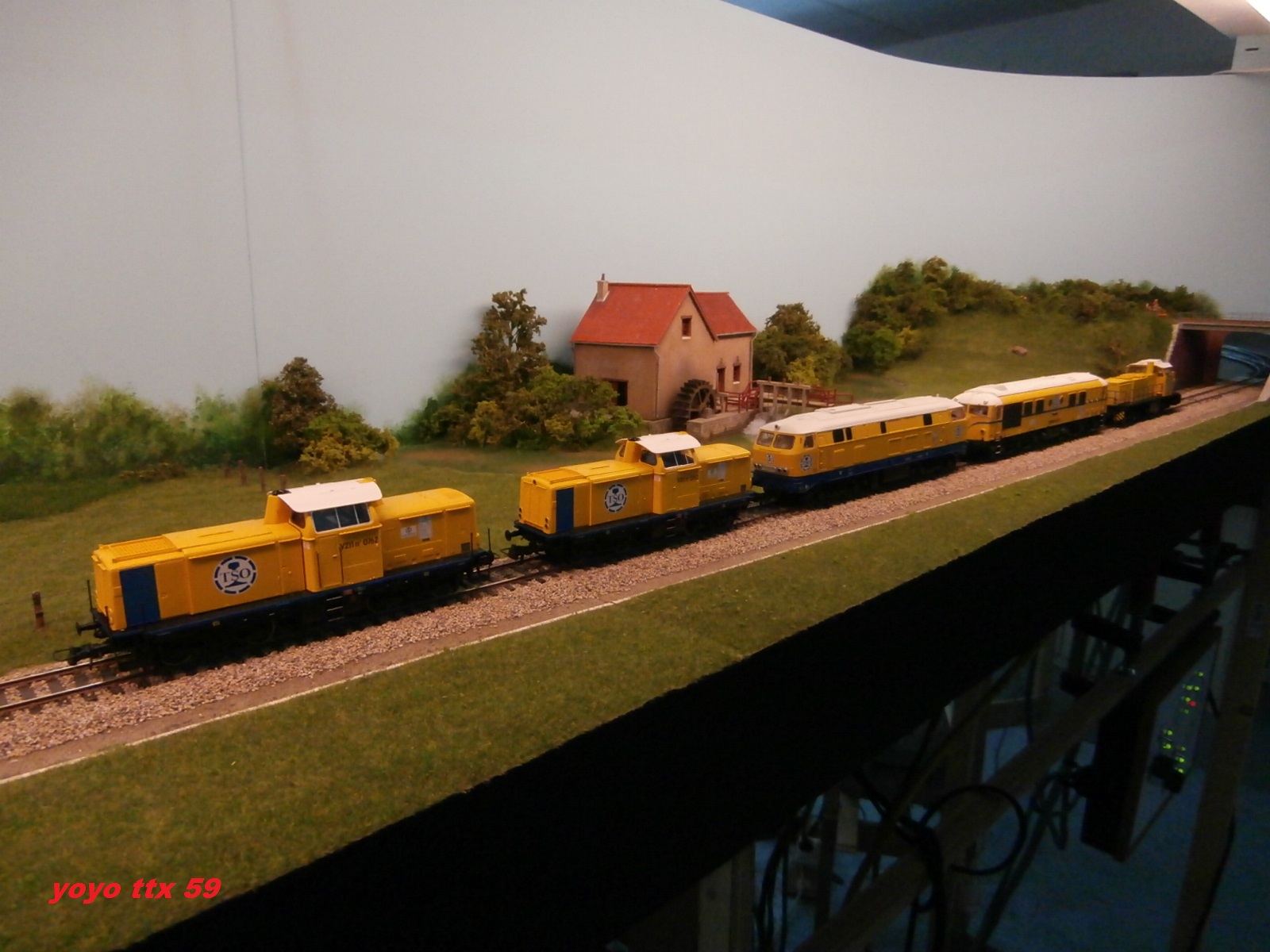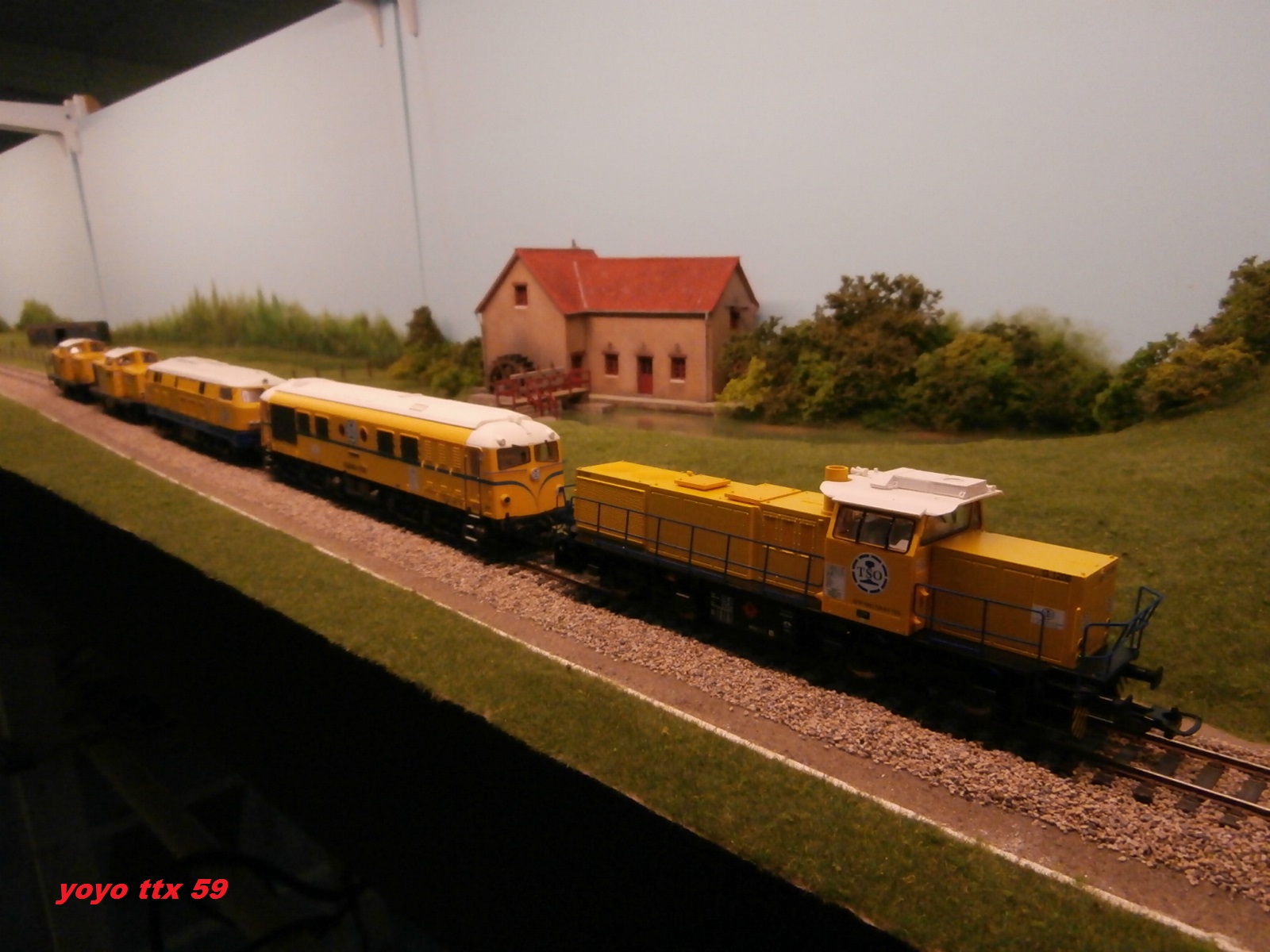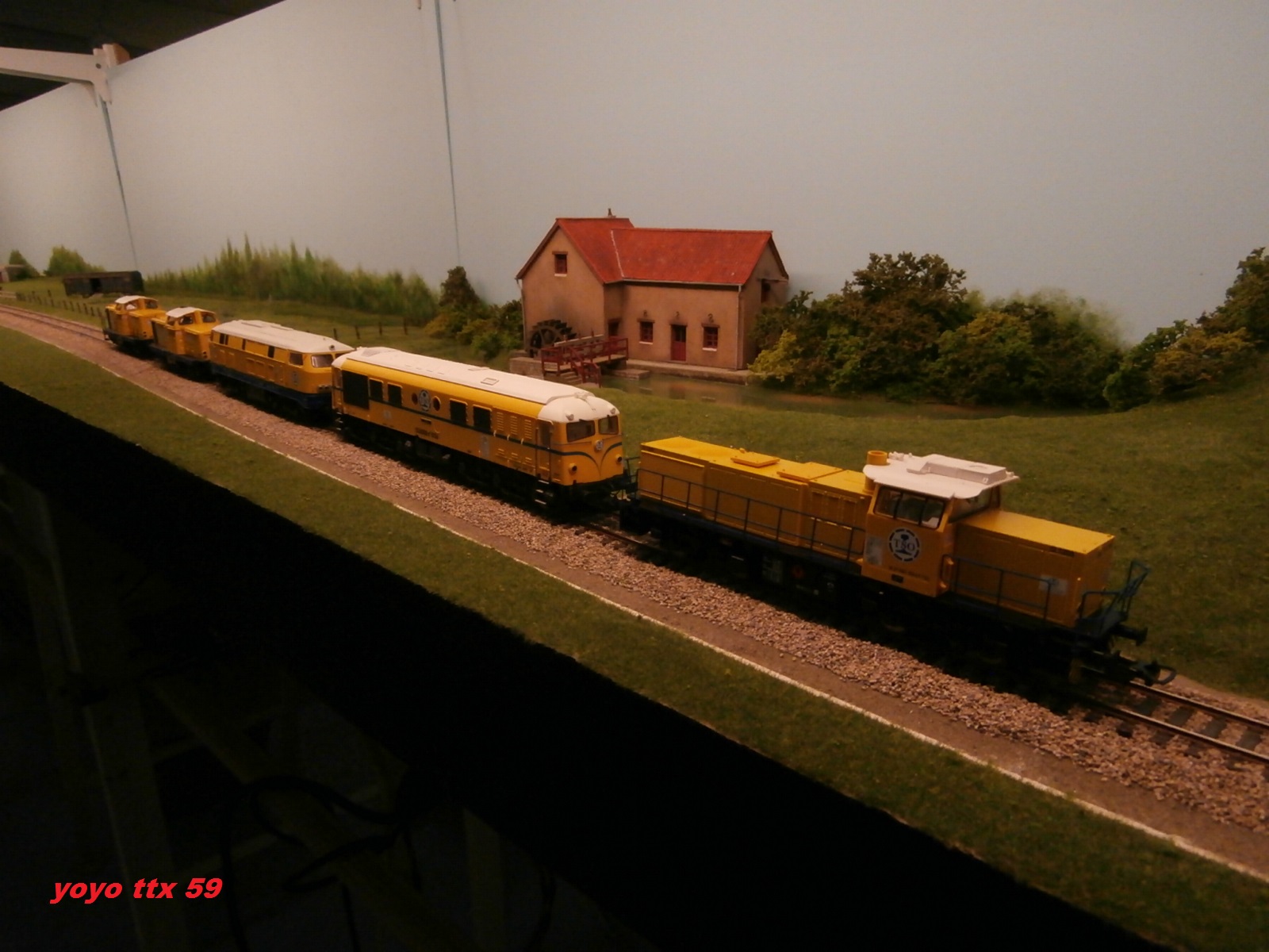 Nous voici de nouveau a courir dehors , et la :o un train de ballastières quitte lui aussi la petite base travaux :