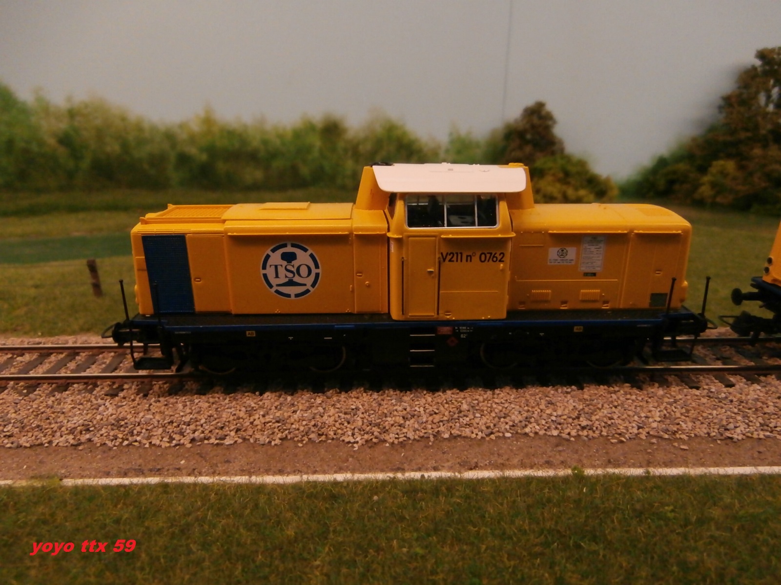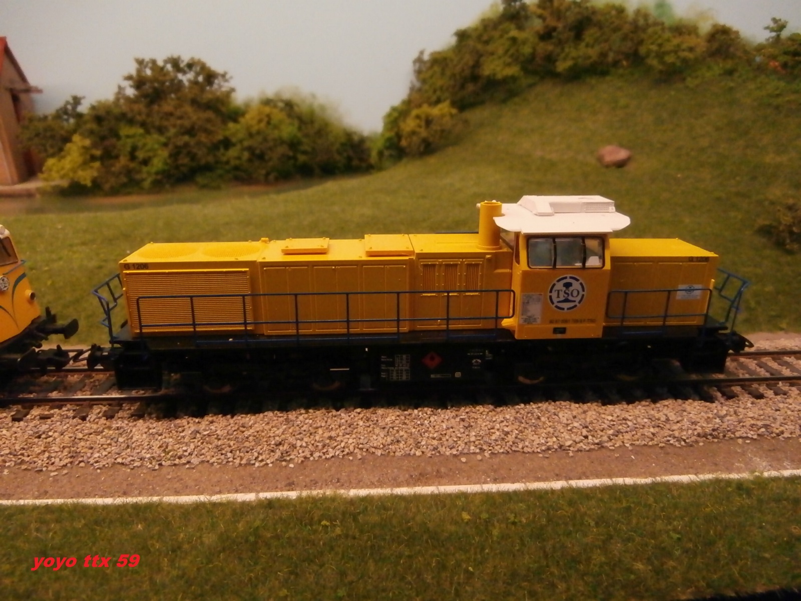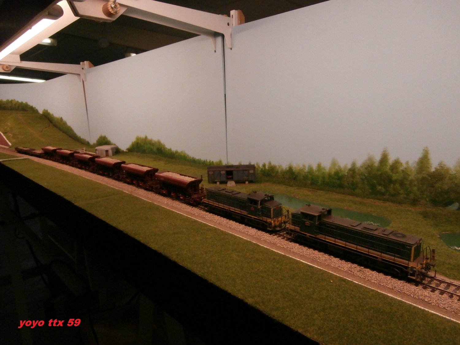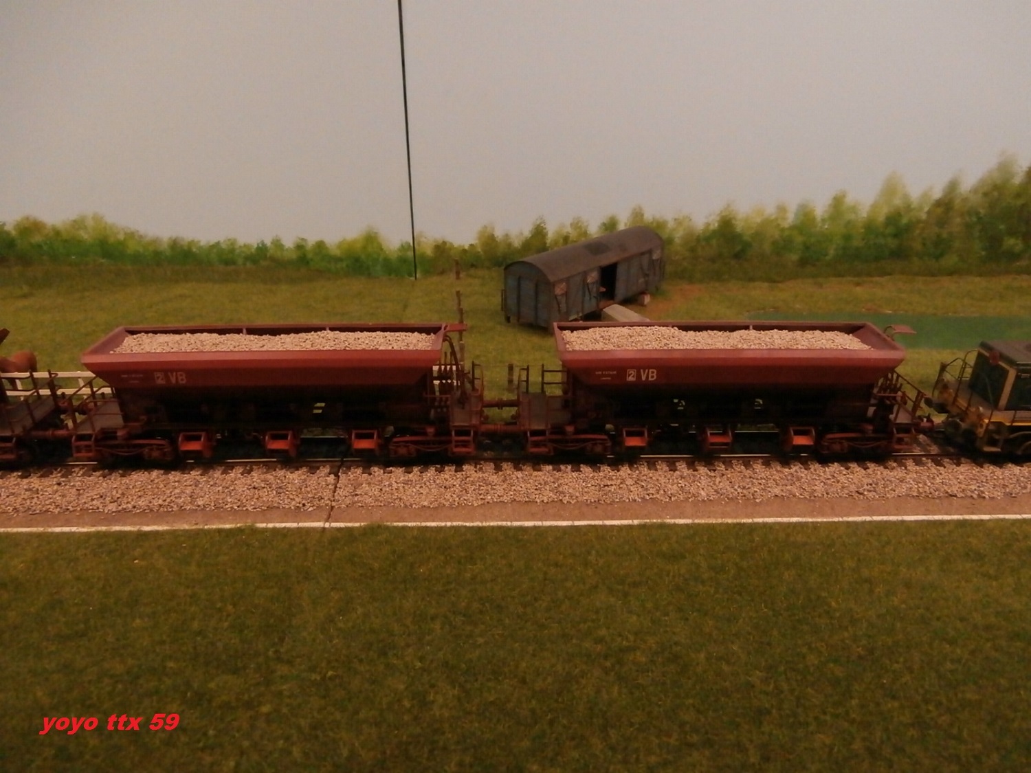 Nous voici de nouveau a courir dehors , et la :o un train de ballastières quitte lui aussi la petite base travaux :