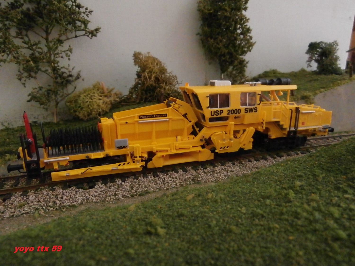 ) .Au loin un bruit de moteur attire mon attention .Je décide donc d'attendre sur le pont car le bruit de ce moteur ce fait plus intense .Et encre une surprise avec cette profileuse ( réalisation de Jean Claude ) qui arrive tout en ralentissant et qui s'arrête a ma hauteur .Avec cette arrêt ( normal le carré est fermé suite au passage de la DGS 62 N