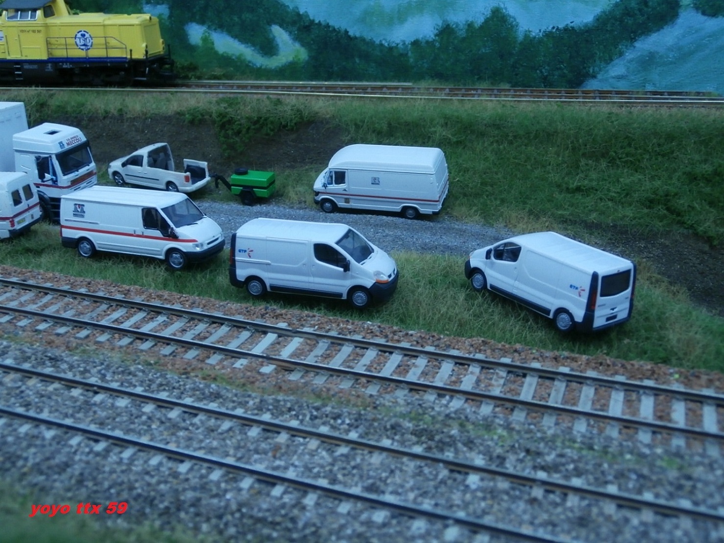 Voici les véhicules de chez TSO et Meccoli présents sur le chantier RVB :( Notez au passage la présence de véhicules ETF pour l'autre chantier qui ce trouve sur voies principales