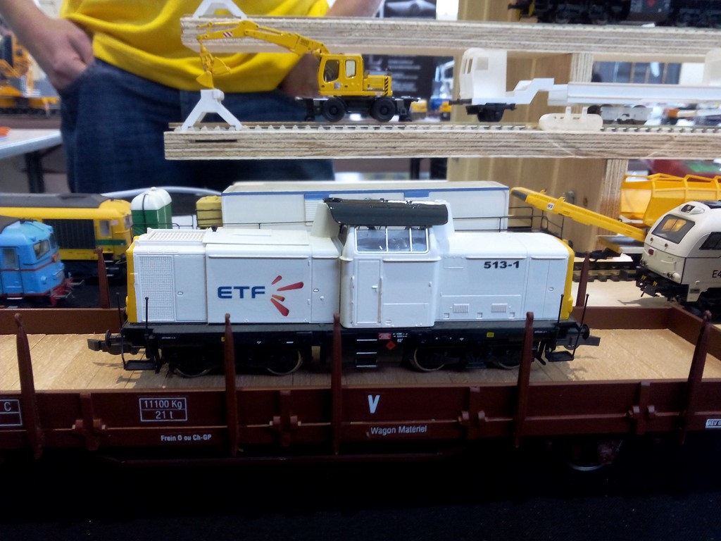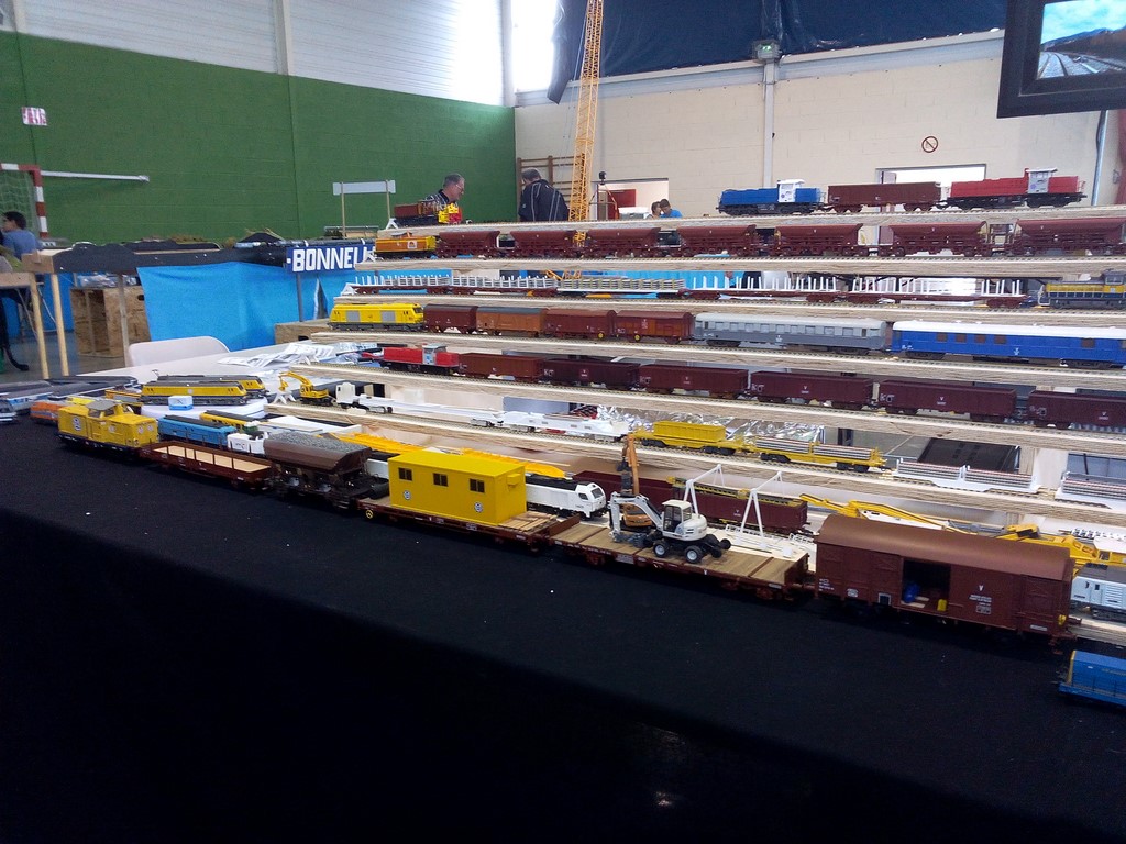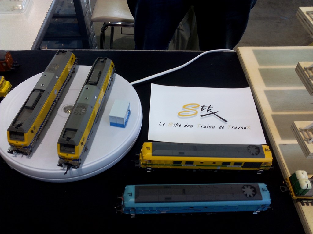 Lors de cette exposition j'ai eu la surprise de découvrir dès le samedi soir la présence d'un stand d'un membre du forum, à savoir Guillaume "ttxdudu90" avec lequel j'ai sympathisé. D'un commun accord j'ai exposé sur son stand le dimanche après-midi mon train de travaux TSO à l'échelle Zéro. Nous avons passé un bon weekend de convivialité et bien sur parlé des trains de travaux. Voici quelques photos du stand en question.