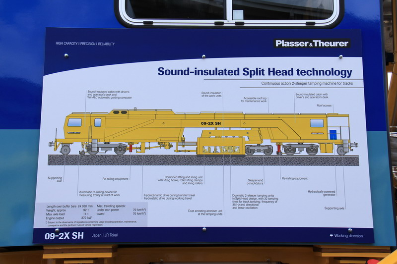 voici le modèle présenter sur le stand Plasser & Theurer une Bourreuse 09-2X SH n°6300 - 2017 pour le société japonaise NKH, qui réalise des travaux de maintenance sur le réseau JR Tokai