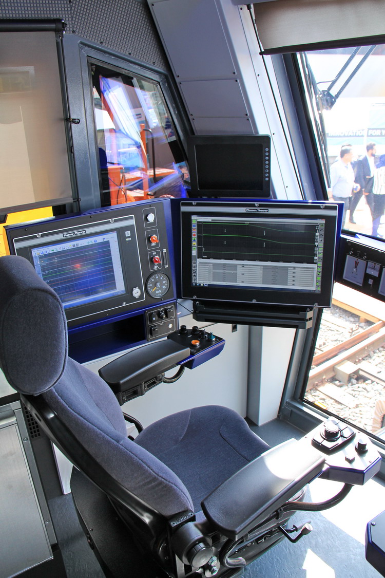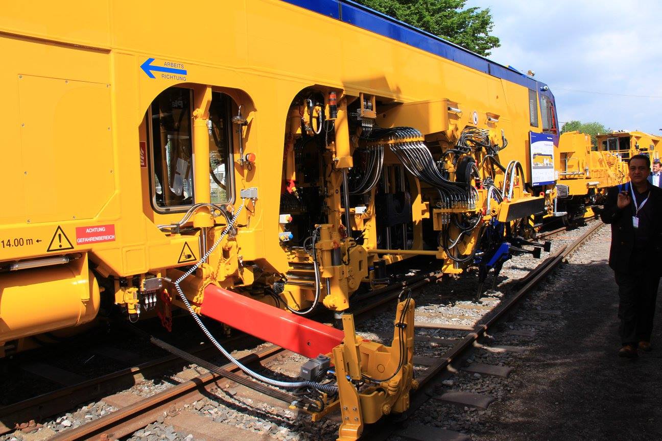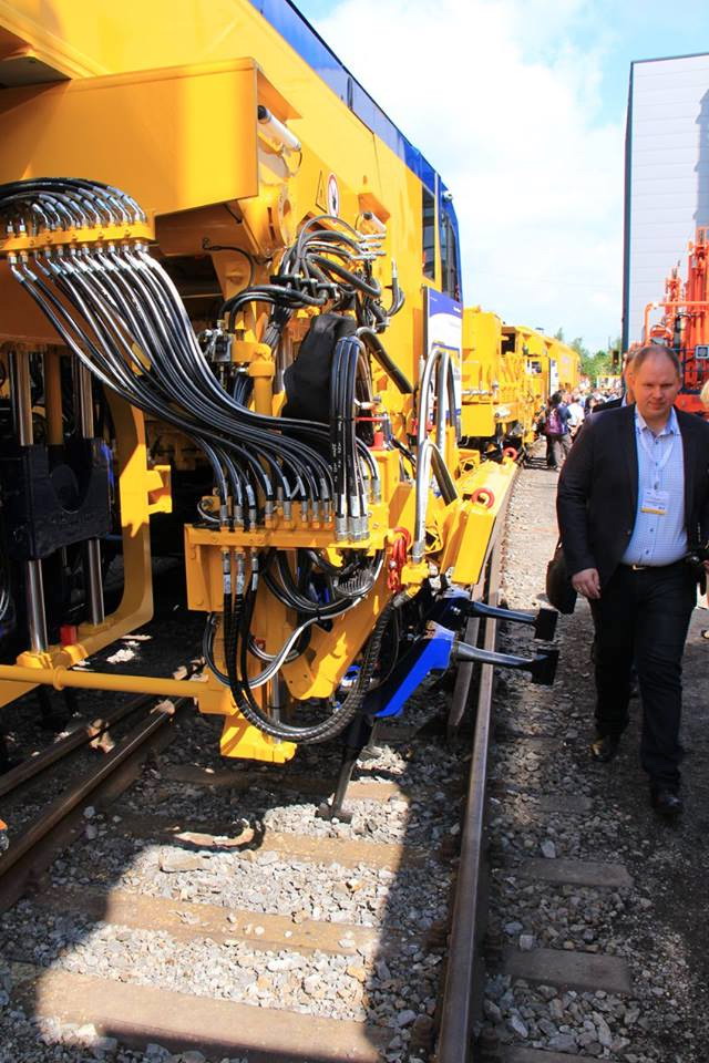 Voici la nouvelle génération de Bourreuse de voies sur le stand de Plasser & Theurer pour l'exposition Ferroviaire IAF Münster 2017 en Allemagne du 30 mai au 01 juin 2017