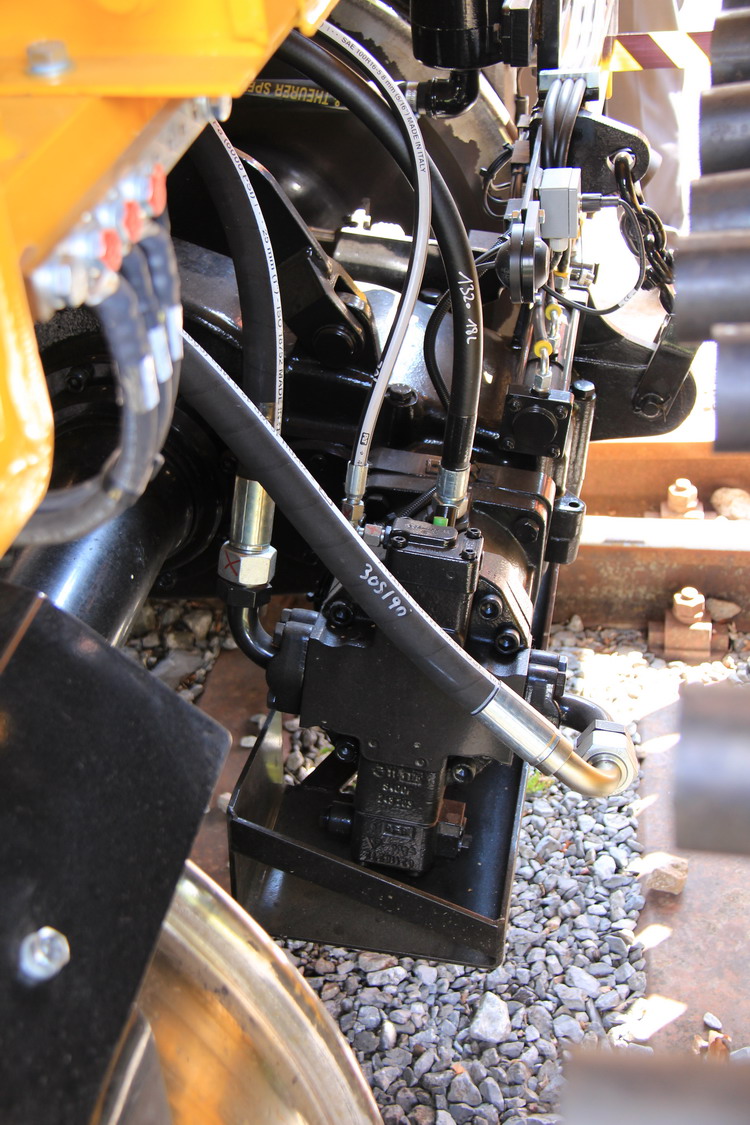 Les machines Plasser & Theurer sont dotées de groupes pivotants, et grâce à la technologie Split-Head, ceux-ci sont divisables longitudinalement et translatables latéralement. Les bourroirs sont quant à eux escamotables. En raison de la régulation de la vitesse de rotation des groupes de bourrage, il est également possible de traiter efficacement, et en produisant un minimum d’usure, les zones où le lit de ballast est colmaté. Les différents dispositifs pour le relevage et le dressage de la voie saisissent le rail par le patin ou par le champignon, et sont translatables latérale­ment en présence d’obstacles. Le dispositif de relevage supplémentaire de la troisième file de rails intervient pour traiter les appareils de voie lourds sur traverses béton, notamment dans la zone des traverses longues.