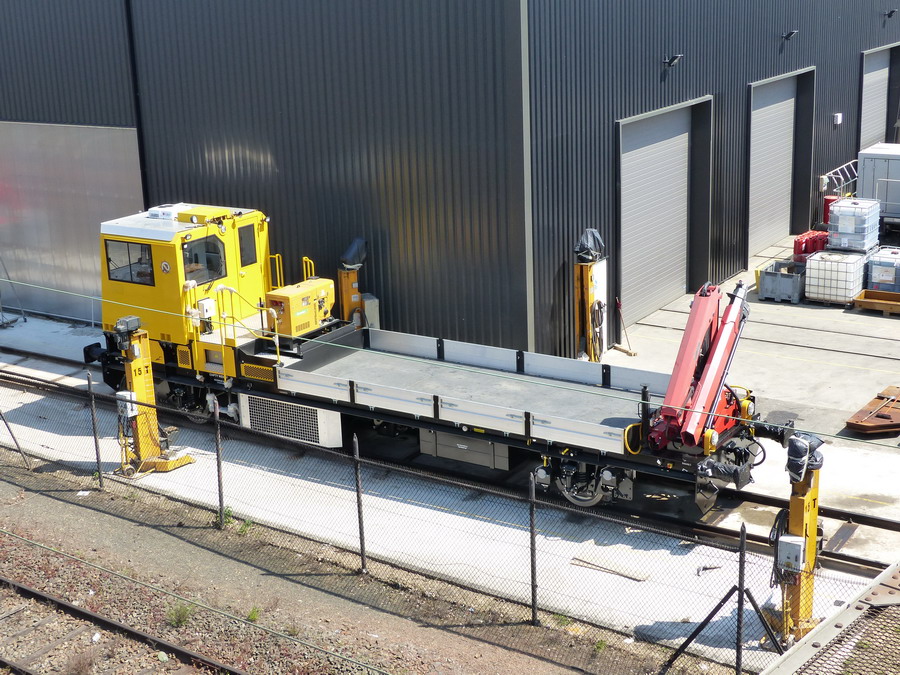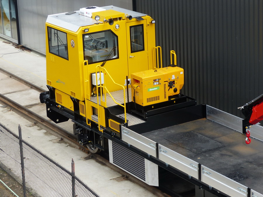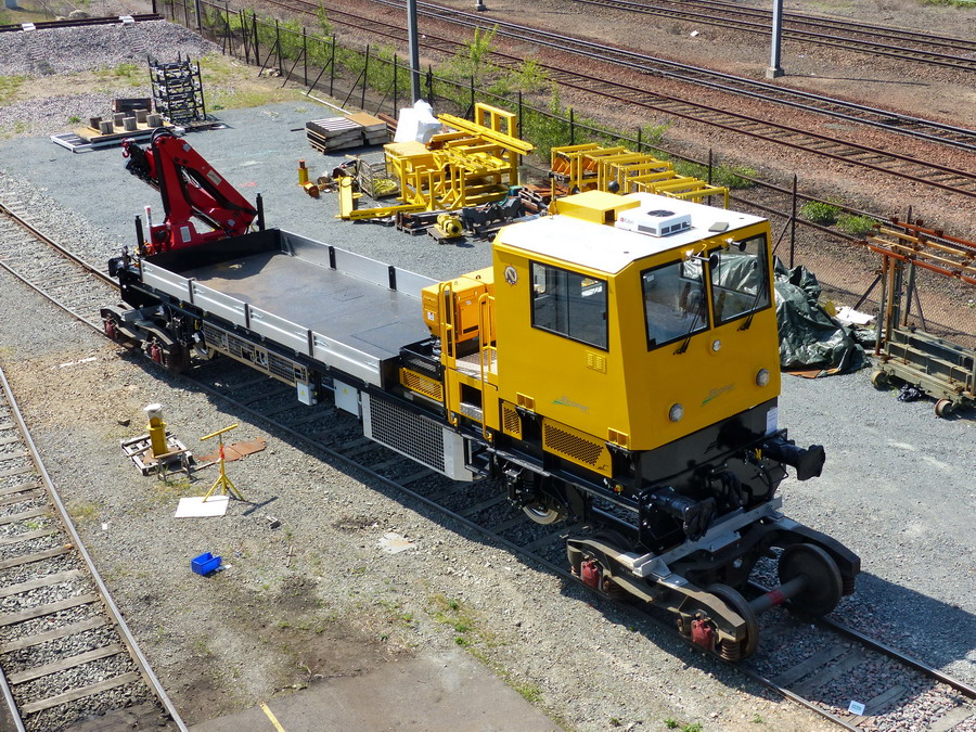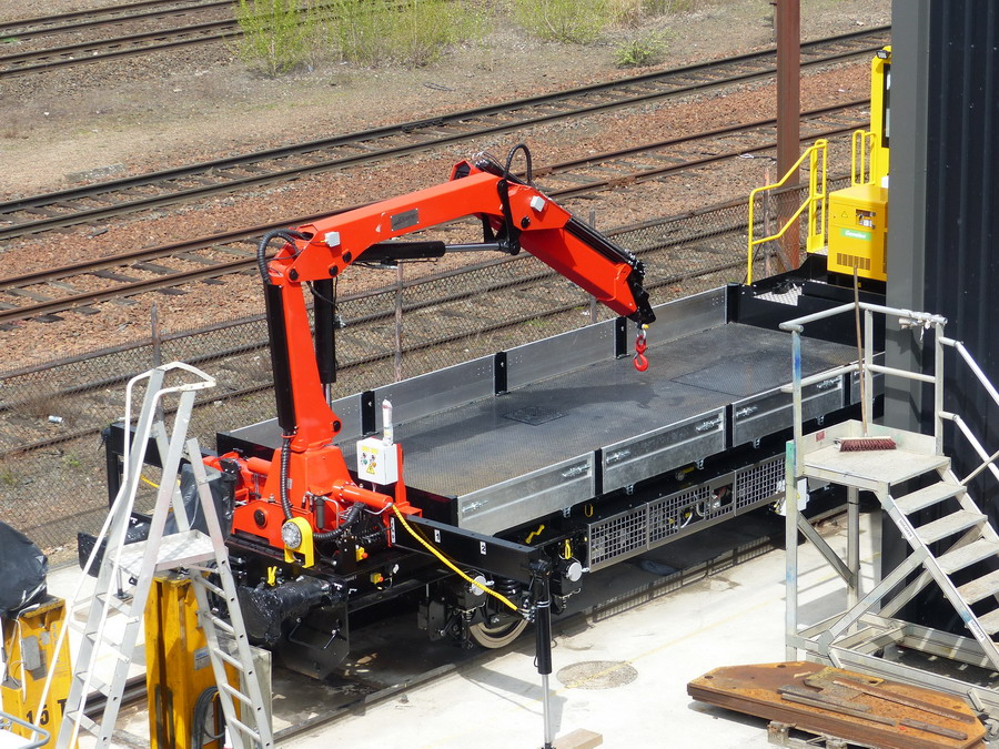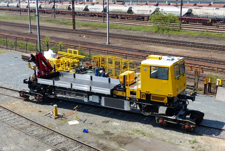 Une des draisines pour le Pakistan Railways sortant de fabrication des ateliers de la Socofer à Saint Pierre des Corps en photos la n°6 série A0114 avec essieux pour voie large 1676 mm ce qui explique les bogies pour déplacer sur voie normale