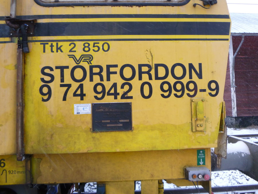 Voici une Bourreuse de Plasser & Theurer n°999 de 1993 de type 08-475 Unimat 4S - VR 99 74 9420 999-9 Ttk 2850