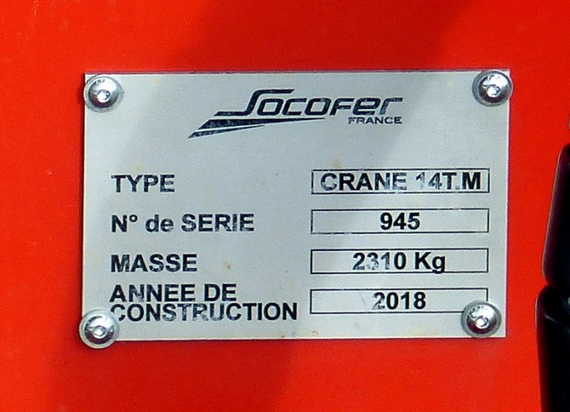 avec une grue de type CRANE de 14 T.M n° de série 945 - 2018 et d'une Masse de 2310 kg