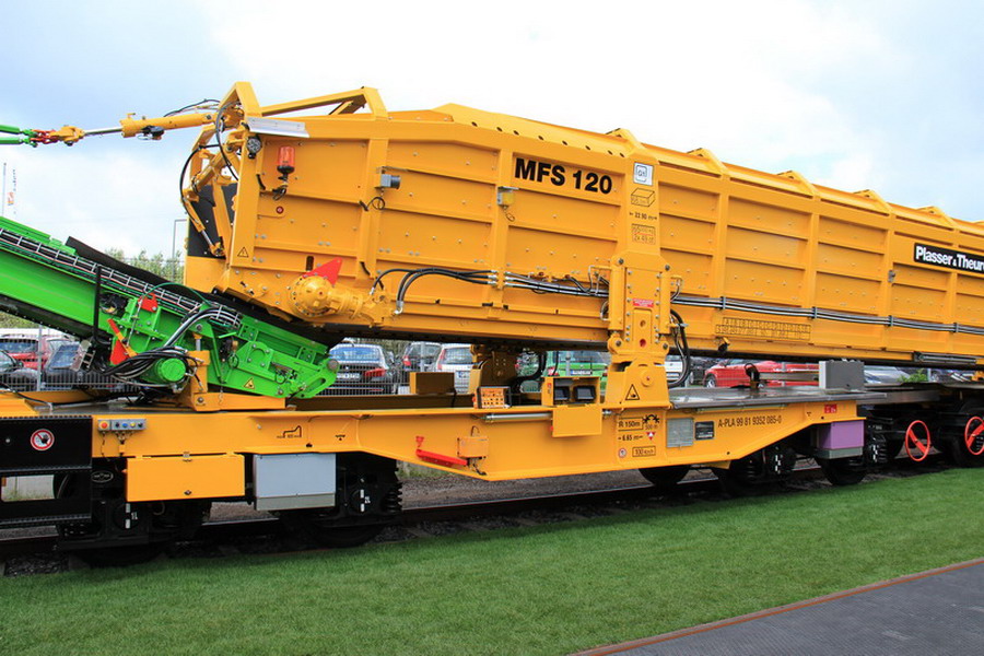 MFS 120 : la gestion des matériaux facilitéeLes wagons auto-stockeurs et déchargeurs contribuent considérablement à la réussite générale d’un chantier. Ils assurent l’acheminement des matériaux et le chargement des déblais. Ceci permet de tirer profit au mieux de la performance d’une dégarnisseuse-cribleuse ou d’une machine d’assainissement de la plateforme de la voie et de la maintenir en marche au rendement optimal.