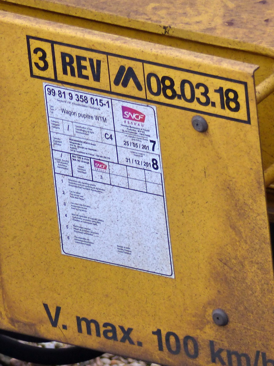 - Agrément SNCF RESEAU / 99 81 9 358 015-1 MTP 16 173 - 25-05-2017 / 31-12-2018