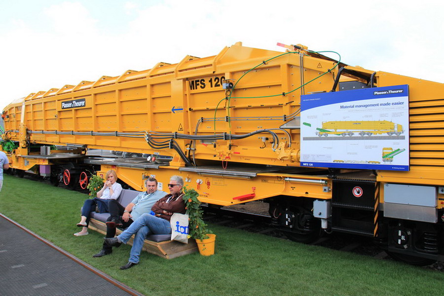 MFS 120 : la gestion des matériaux facilitéeLes wagons auto-stockeurs et déchargeurs contribuent considérablement à la réussite générale d’un chantier. Ils assurent l’acheminement des matériaux et le chargement des déblais. Ceci permet de tirer profit au mieux de la performance d’une dégarnisseuse-cribleuse ou d’une machine d’assainissement de la plateforme de la voie et de la maintenir en marche au rendement optimal.