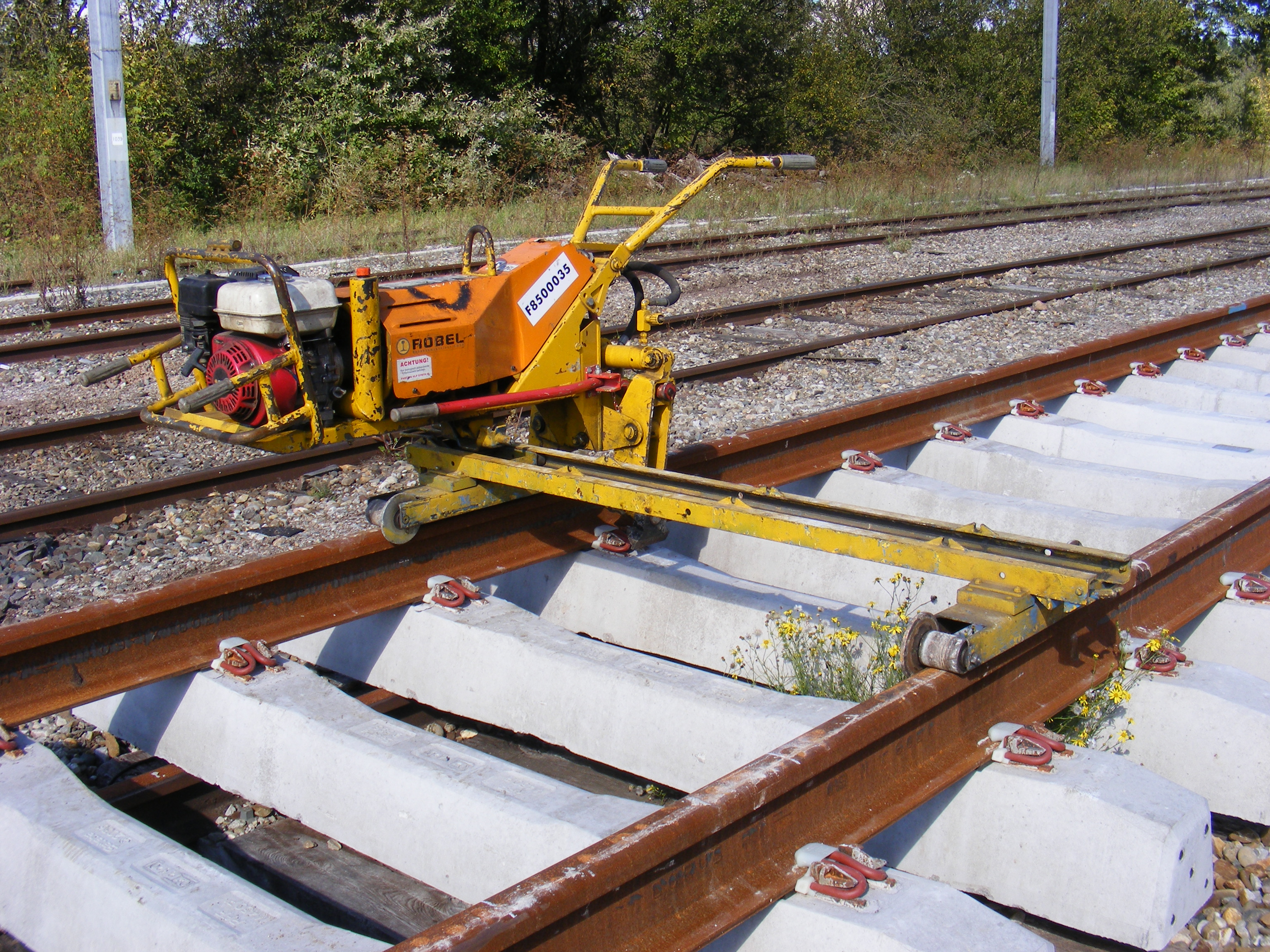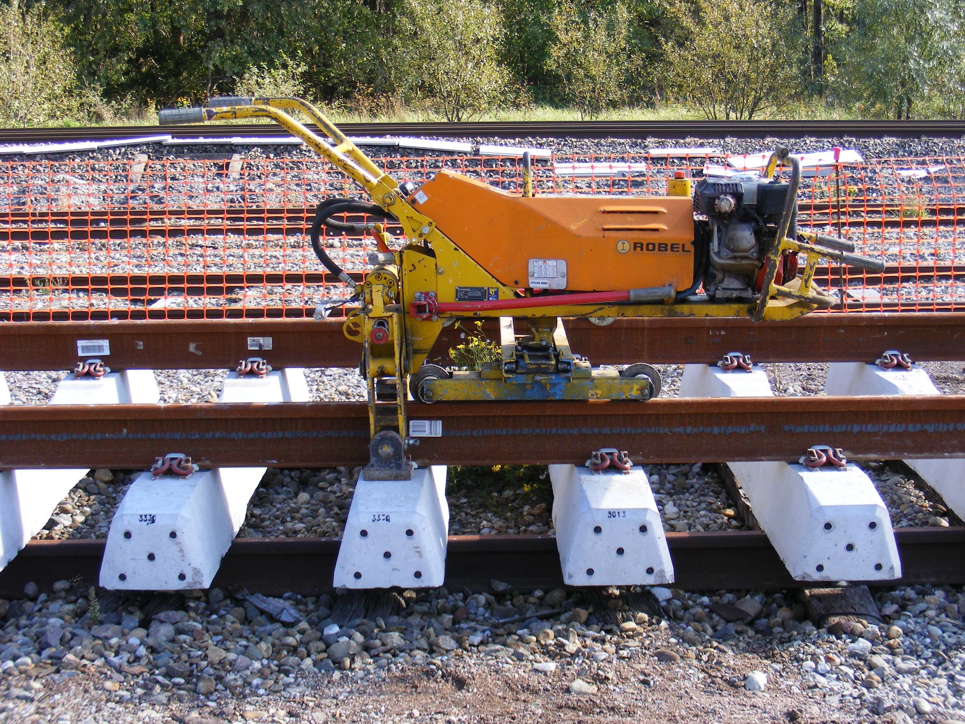 Le second comme son nom l'indique va levé le rail et un opérateur y placera l'un des petits rouleaux métallique que l'on voit sur une des photos, cela permet un libre cheminement du rail.