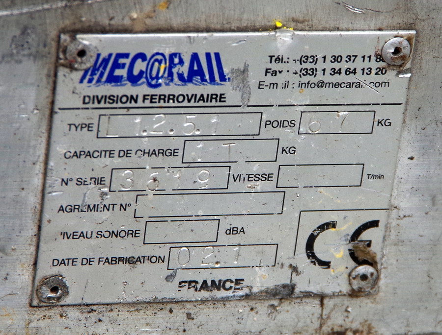 Voici le Lorry de Mecarail CMU 1T de type L125 n° de série 3619 de Colas Rail