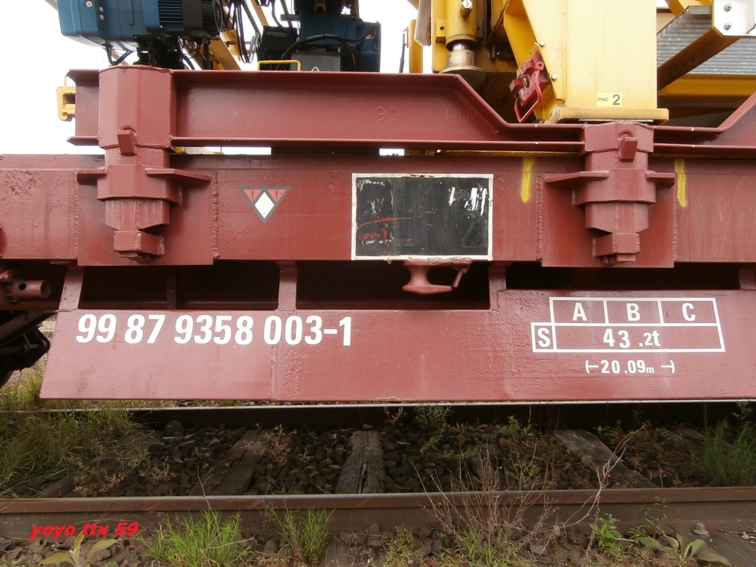 .Voici les nouvelles immatriculations des wagons.99 87 9358 001-599 87 9358 002-399 87 9358 003-1Ces trois wagons transportent les " PMC 1 , PMC 2 , PMC 3 ".Maintenant a voir si il n'y a pas d'autres triplettes de portiques