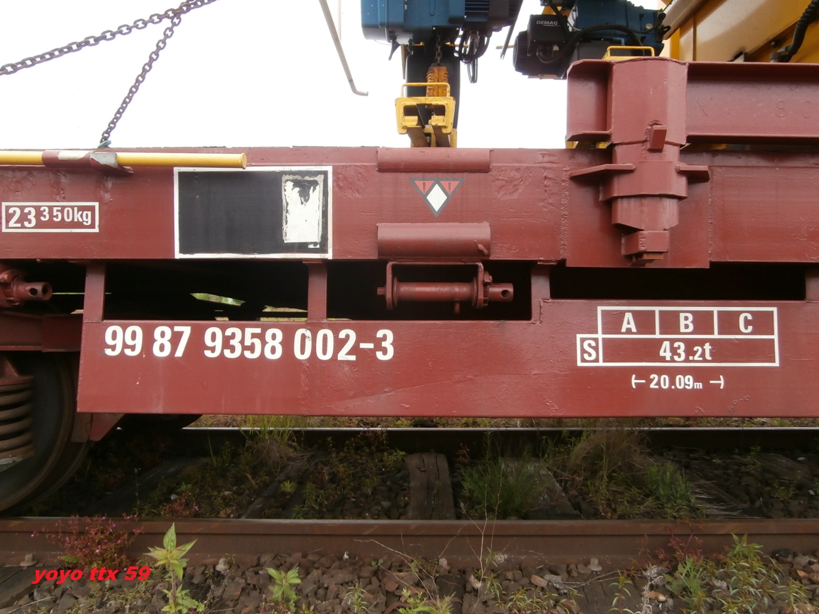 Voici 3 wagons avec des portiques PMC pour la LGV - SEA à Saint Pierre des Corps le 27-09-2014