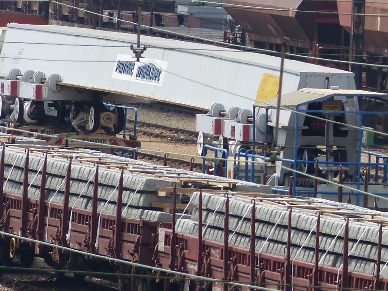:idea: Voies Ferrées numéro 157 septembre-octobre 2006 article "Transport et manutention de tabliers auxiliaires pour ponts provisoires a l'aide de wagons spéciaux" de Jean-Marc STEINER avec renseignements de Marcel LE GUAY avec diagrammes au 1/120 des SCsy 998664 et 998665 (c'est celui des photos plus haut et des photos de l'article cité) et des SCsy 998666