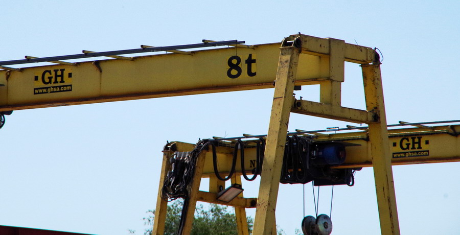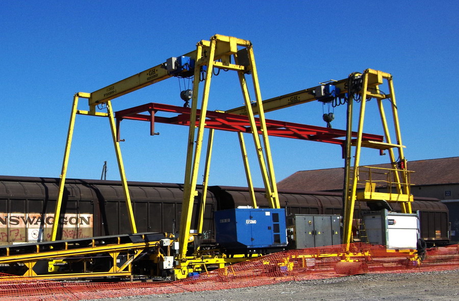 Portique GH 8T n°5008899-1 et 5008xxx-x de 2012 pour la mantention des tapies roulant WAC sur les wagons Tombereaux