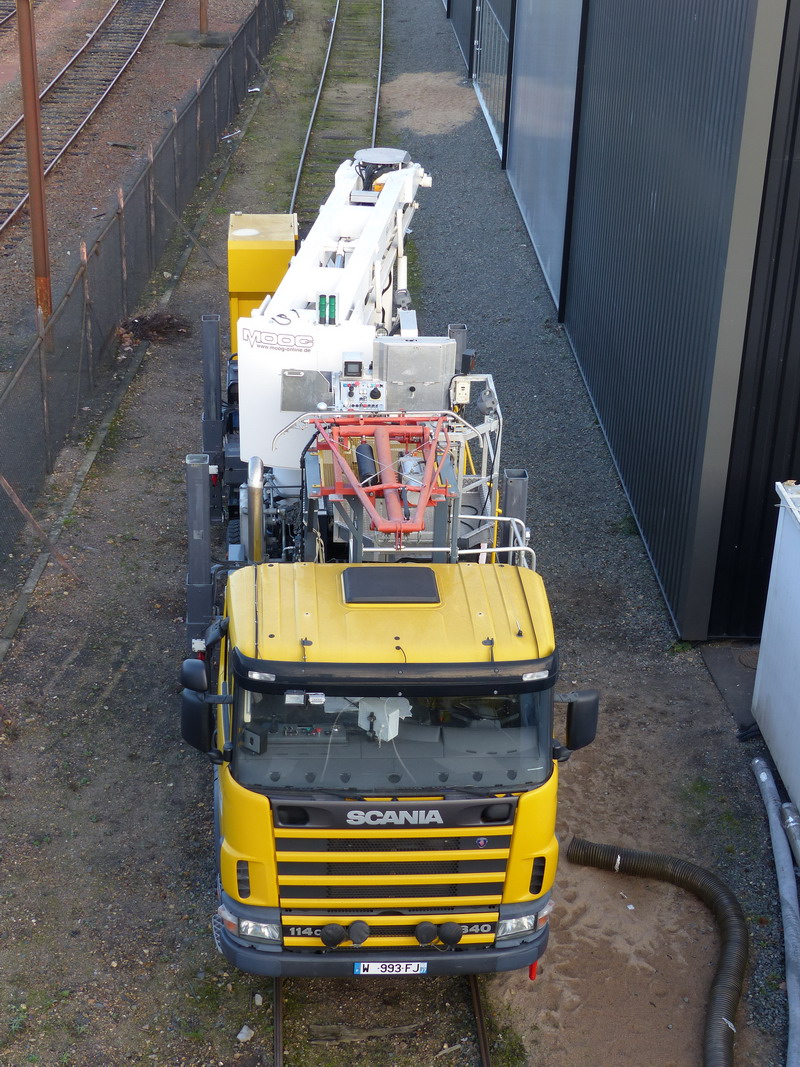 Voici le camion Scania Rail Route W 993 FJ pour intervention sur la caténaire à la Socofer de Saint Pierre des Corps 37