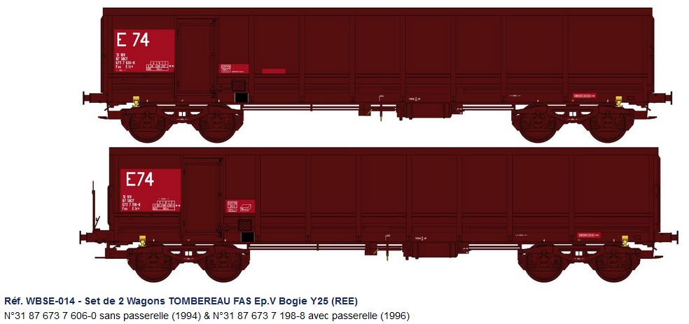 REE vient d'annoncer un programme commun avec Sud Express concernant les tombereaux Fas et Tam dont les E74, sortie prévue au 2ème trimestre 2021. Ces wagons ne sont pas typiquement des wagons employés sur des TTX, mais j'ai pu en croiser sur des trains d'acheminement de ballast neuf ou vieux au milieu d'Eaos ou de E71 (que Roco vient de ressortir). Je comptais en construire 2 ou 3 exemplaires en suivant l'excellent article d'Henri Disdichian dans Voies Ferrées (n° 180 à 182), REE/Sud Express me facilitent la tâche :D