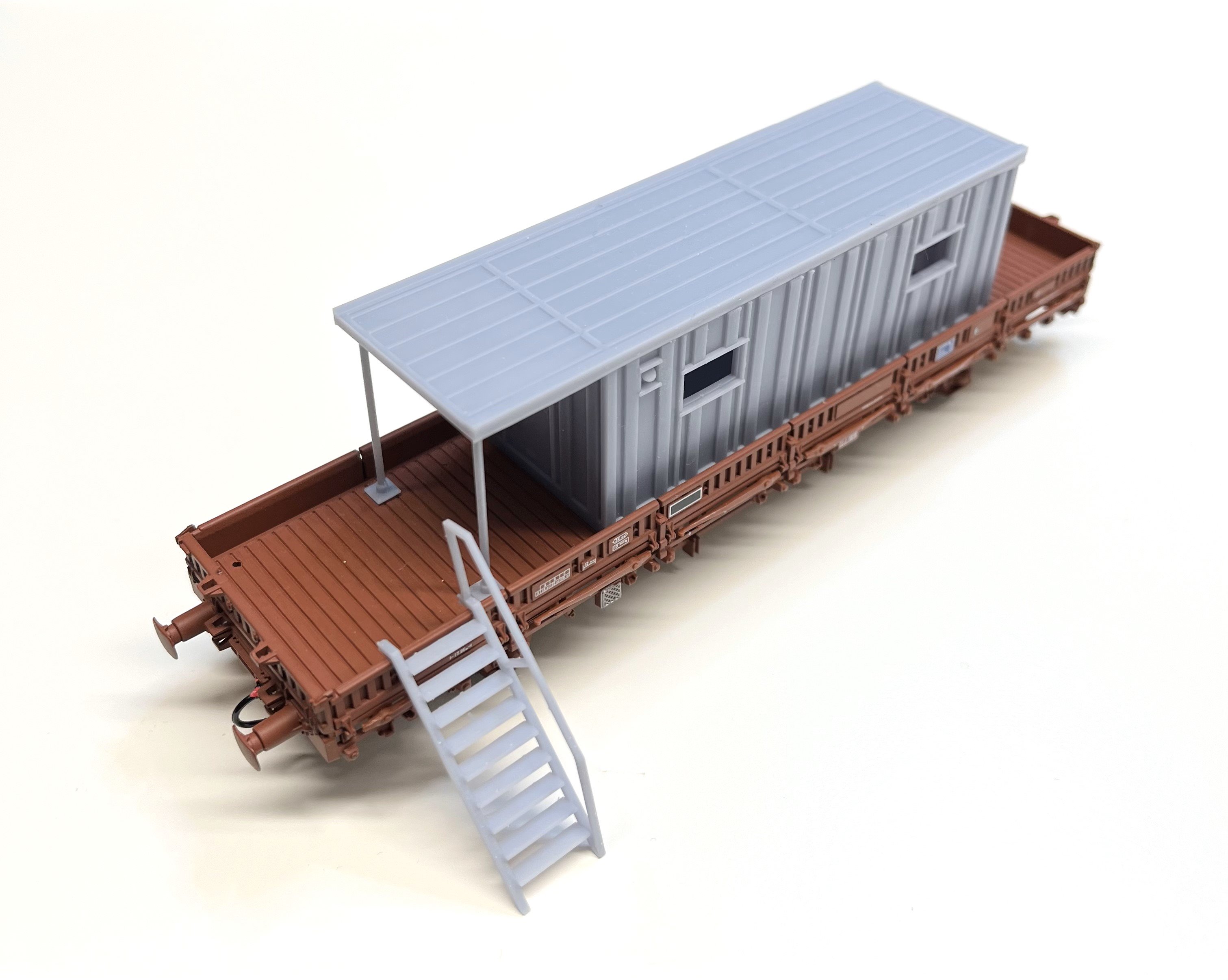 Nouveautés FG 3D en HO et en N. Le bungalow de chantier pour wagon plat avec sa passerelle d'accès.