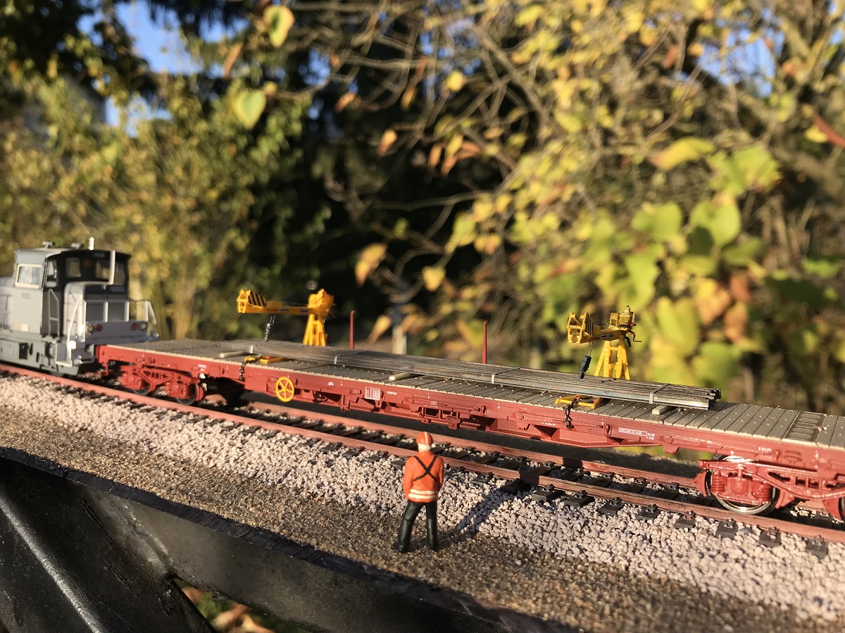 voici photo d'un wagon plat Res illustrant mon article paru dans RMF 506 de septembre 2017, proposant la réalisation de portique de chargement, devenue aujourd'hui obsolète avec la magnifique production de Ludo, et, et sa transposition sur un modèle Jouef