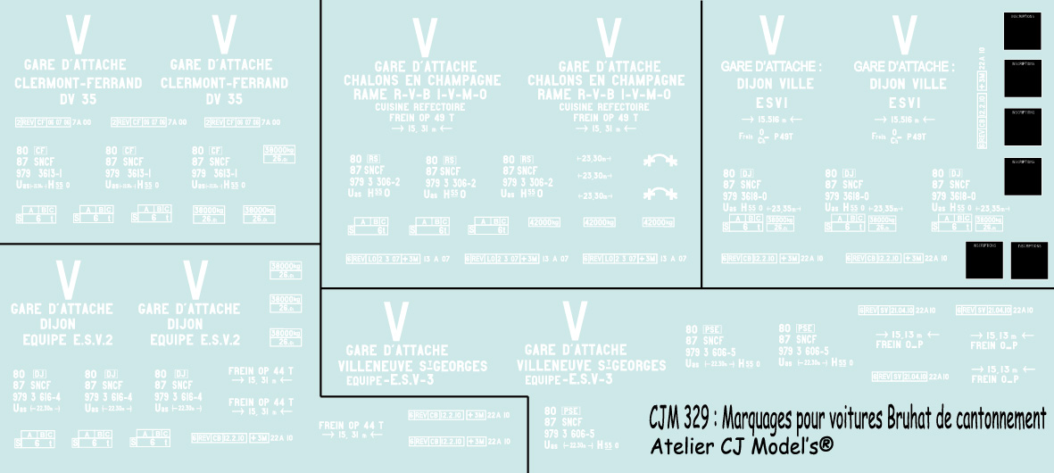 La référence CJM 329, qui est une planche de décalques, vous permettra de réaliser 5 voitures de cantonnement sur la base d'une Bruhat Roco, c'est disponible ici : www.ateliercjmodels.com