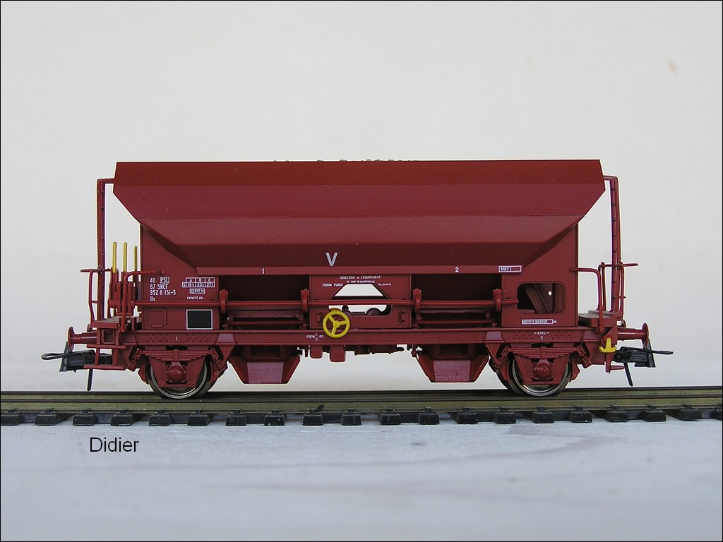En fait vos réponses auront pour but si j’achète des trémies roco avec marquages transcéréales et de les modifier en supprimant le toit et les marquages pour qu'elles soient au parc de service.Pour mon train d'acheminement infra Daccord07