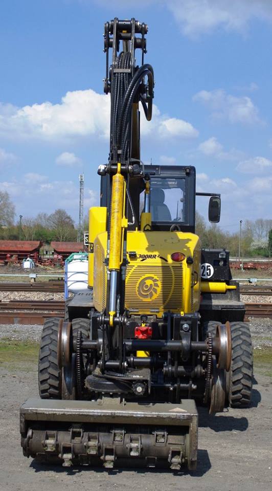 il se trouve sur la base de travaux de la gare de Laon (02) avec un autre UNAC 300 RR2 n°BCDFXX-025 SNCF RESEAU n°21