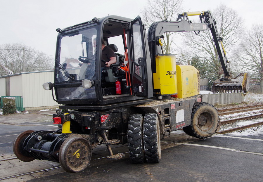 UNAC 300 RR2 de SEFA Environnement U9 au PN n°37 à Eppeville le 08-02-2018 avec enrayage de l'engin sur la voie