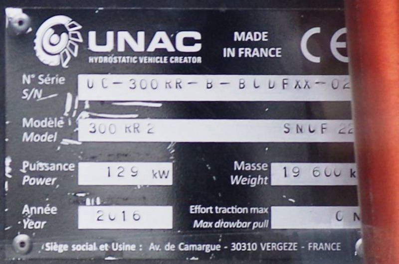 Voici un UNAC 300 RR2 n°BLUFXX-026 - 2016 - SNCF RESEAU n°22 - Agrément de travail MTP 16 243 - 12-09-2021