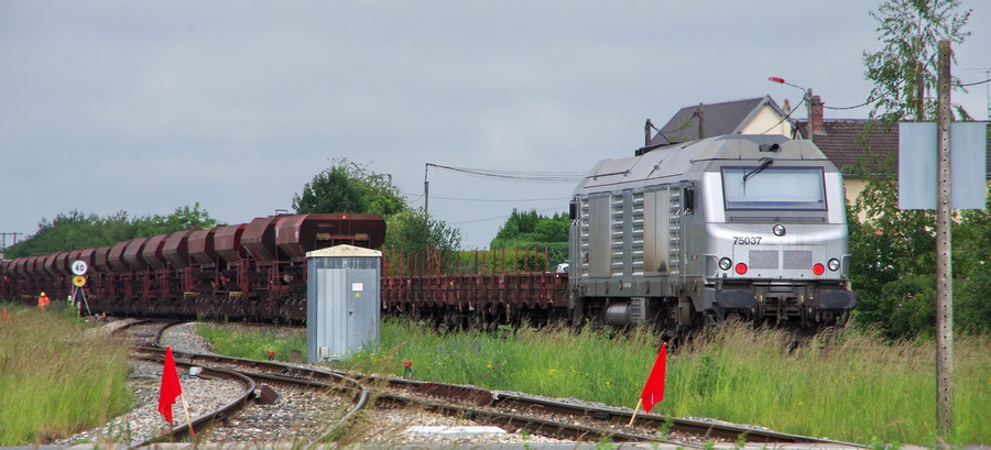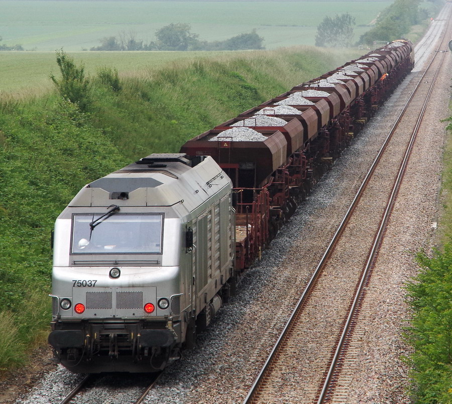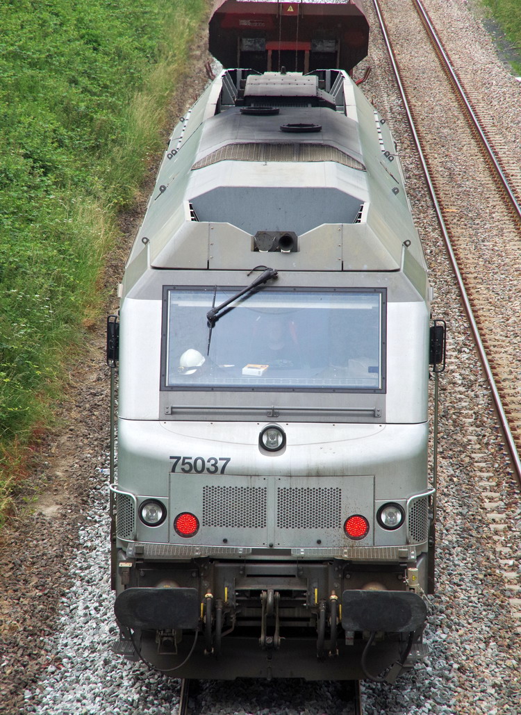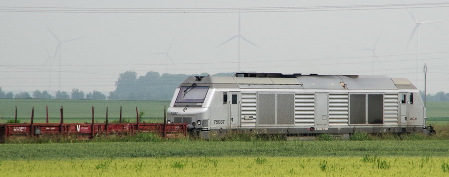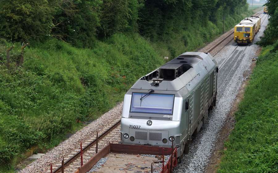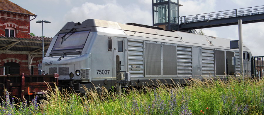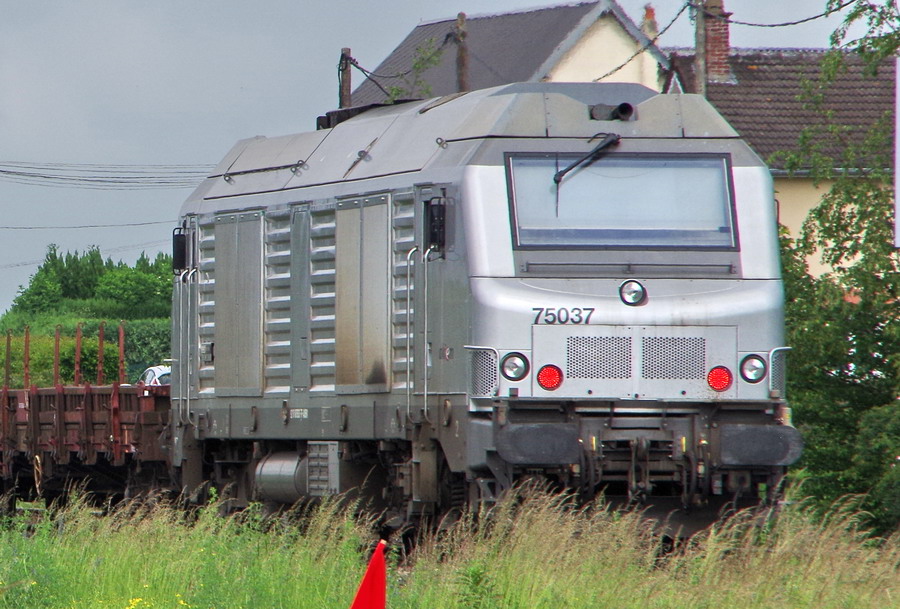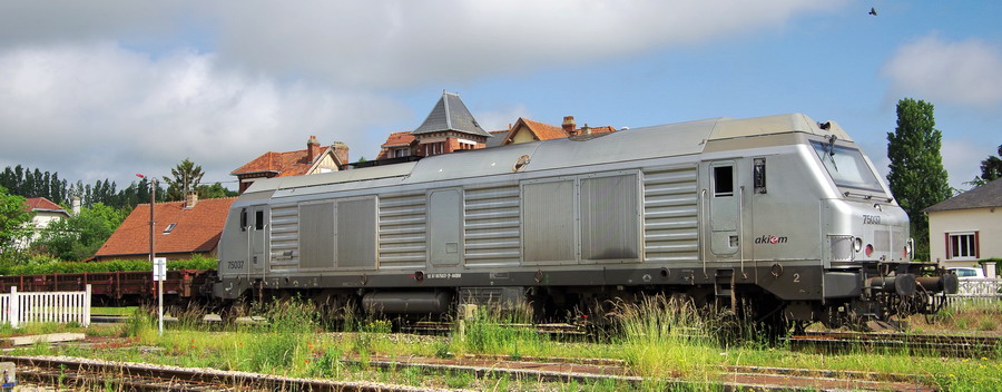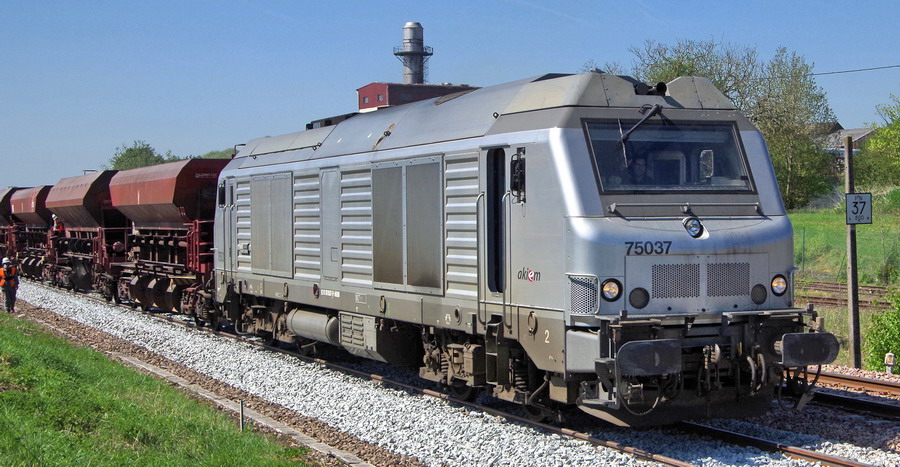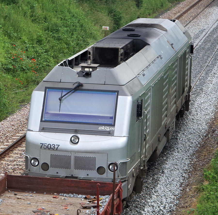 La BB 75037 mise en service le 27-07-2007 pour Fret SNCF en livrée verte puis propriétaire d'AKIEM en livrée grise