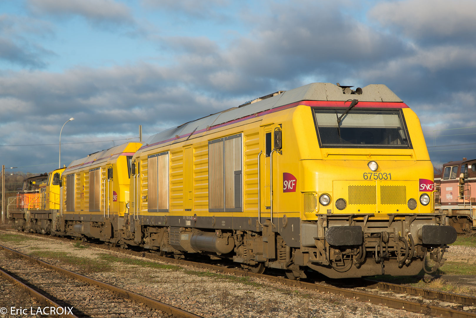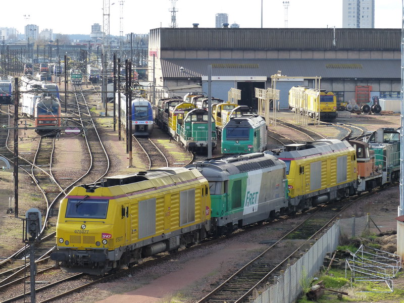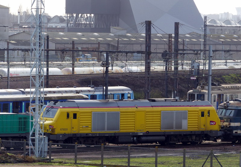 ex machine en livrée Fret puis en livrée grise et la voila en livrée Infra jaune elle se trouve à la sortie Nord