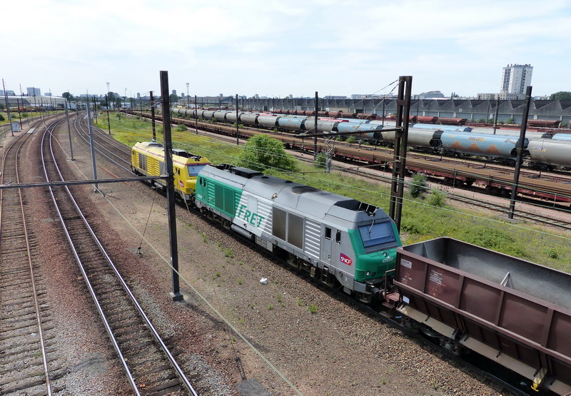 La voici avec la 75057 en livrée Fret sur une rame de Fal vide pour l'ouest de Saint Pierre des Corps le 25-06-2015