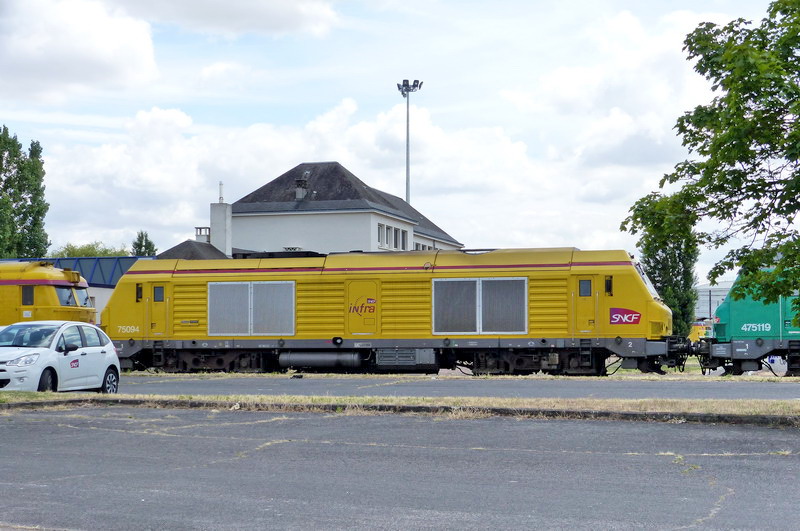 La voici entre la 667548 Infra et la 475119 Fret au dépôt de Saint Pierre des Corps le 27-06-2015